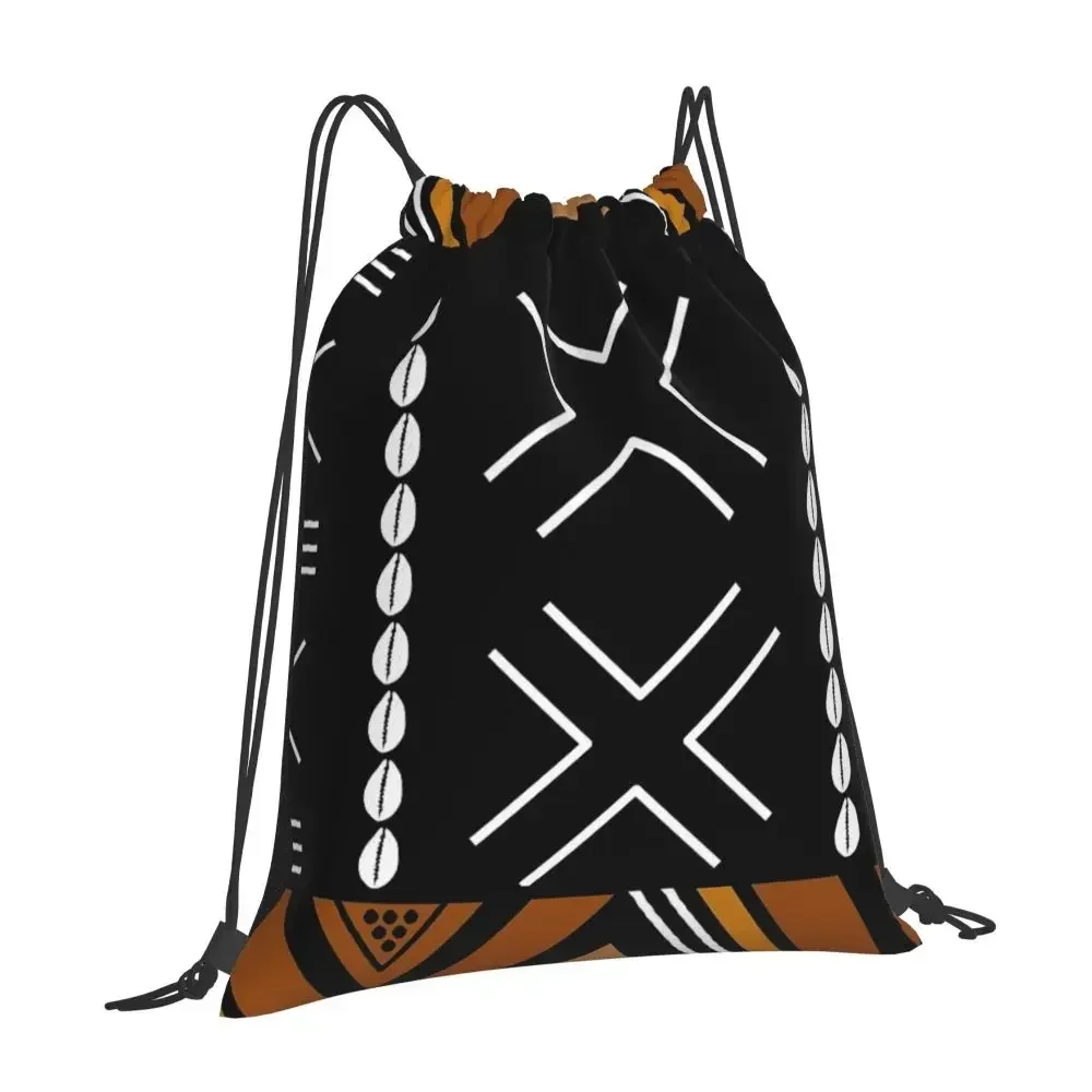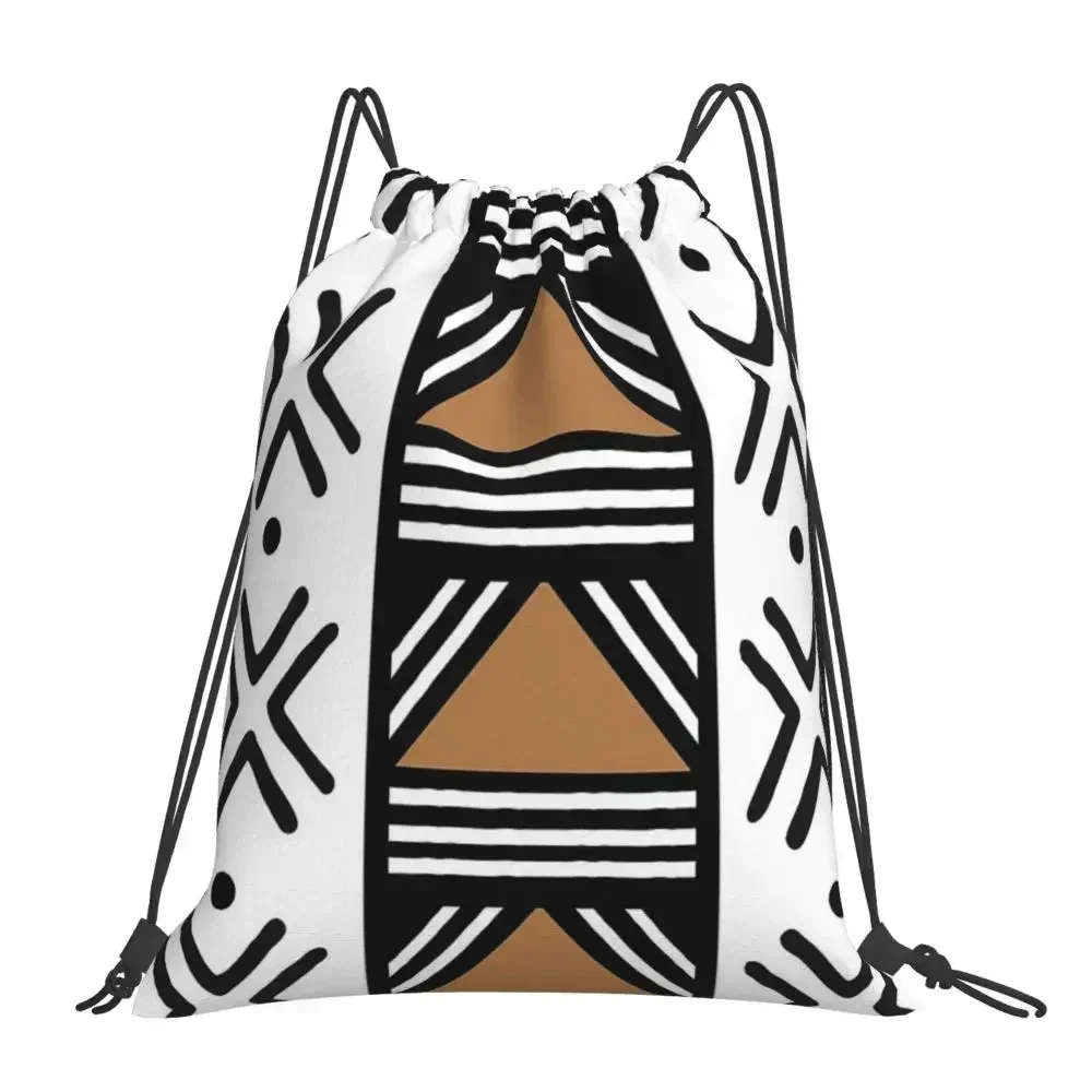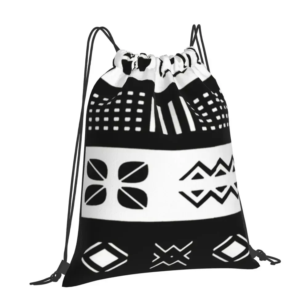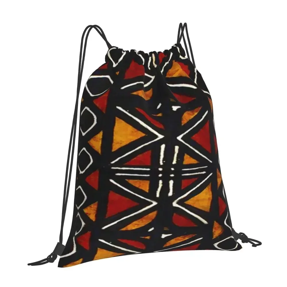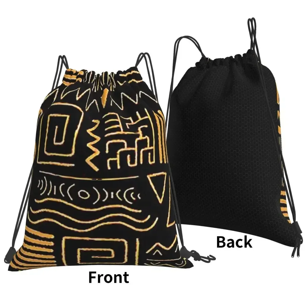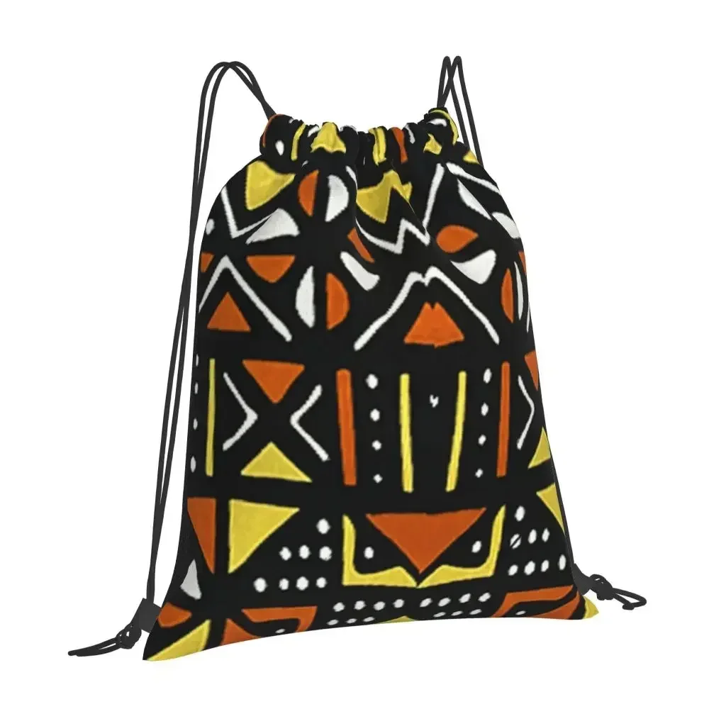 African Tribal Bogolan Pattern Backpacks Portable Drawstring Bags Drawstring Bundle Pocket Sports Bag BookBag For Travel School