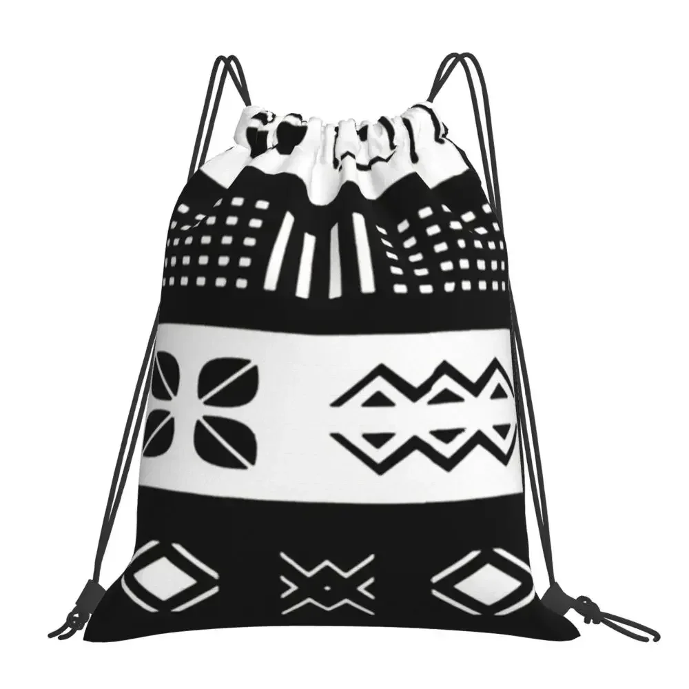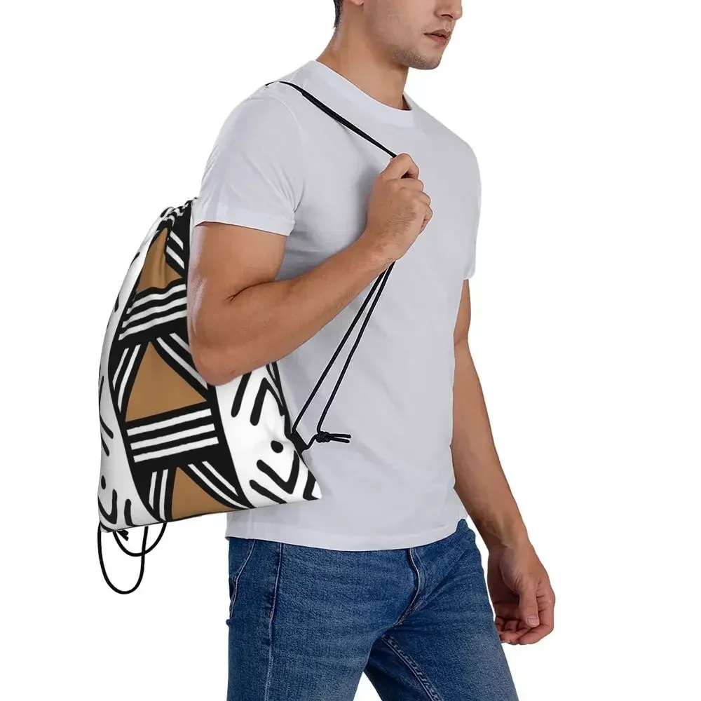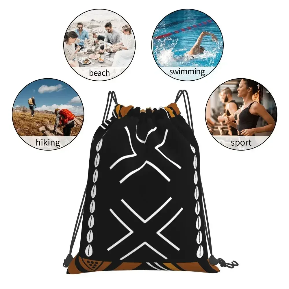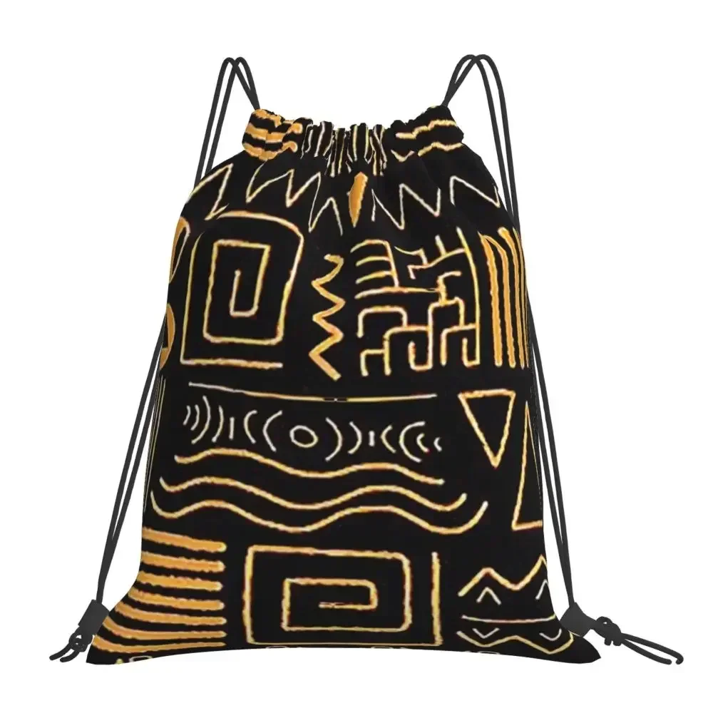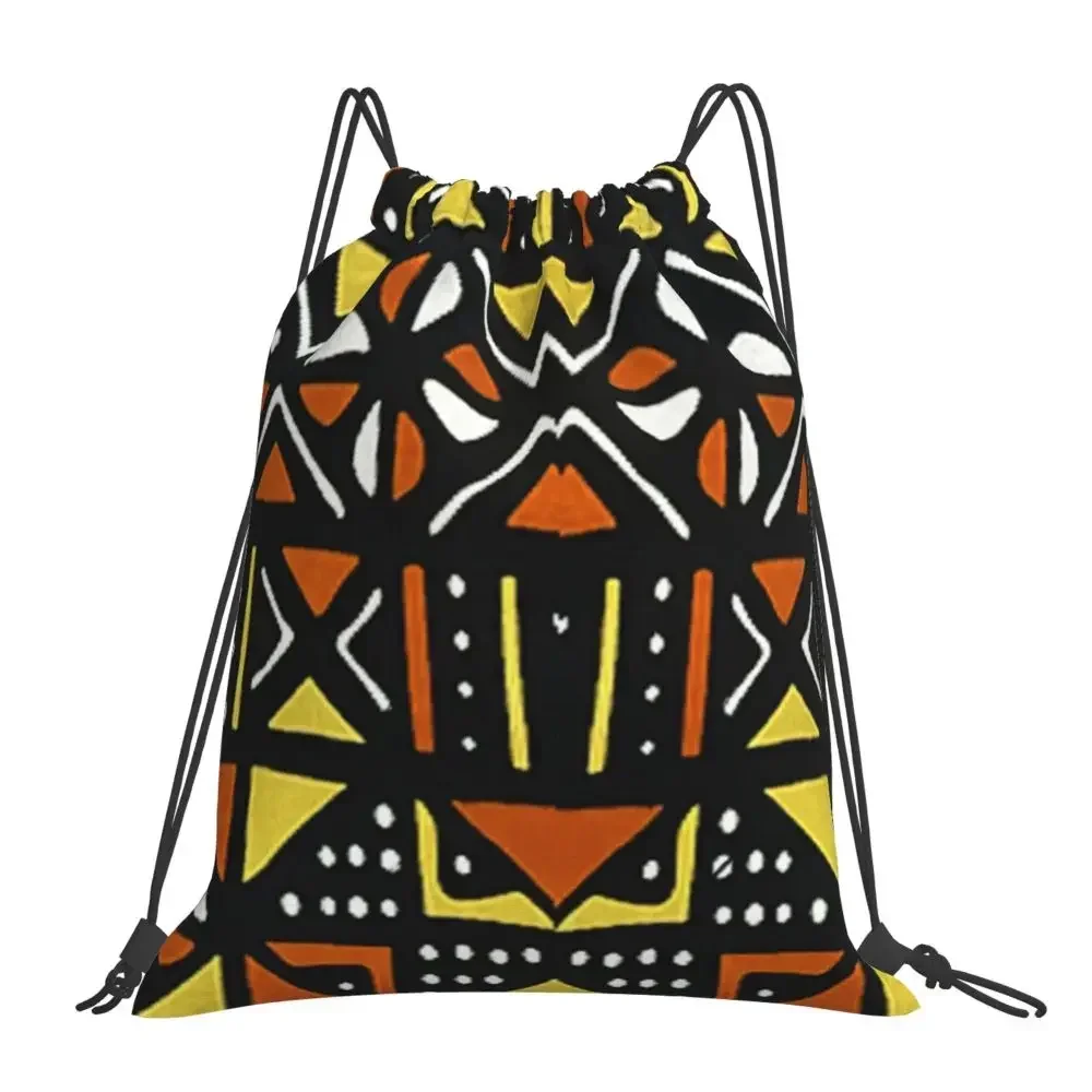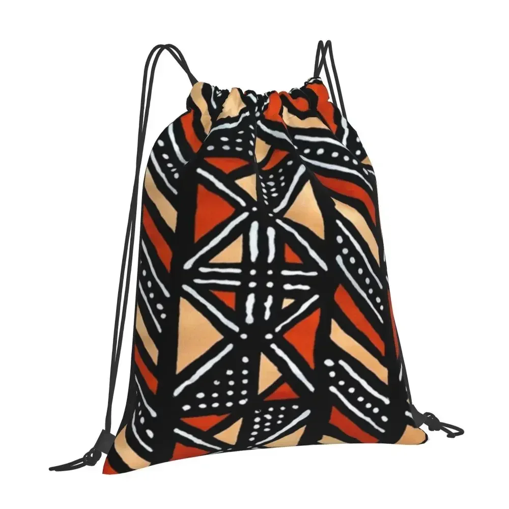 African Tribal Bogolan Pattern Backpacks Portable Drawstring Bags Drawstring Bundle Pocket Sports Bag BookBag For Travel School