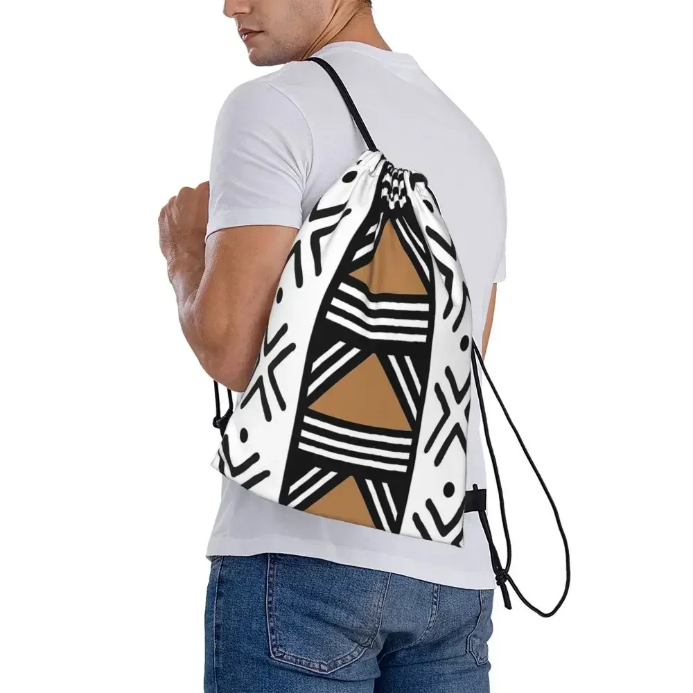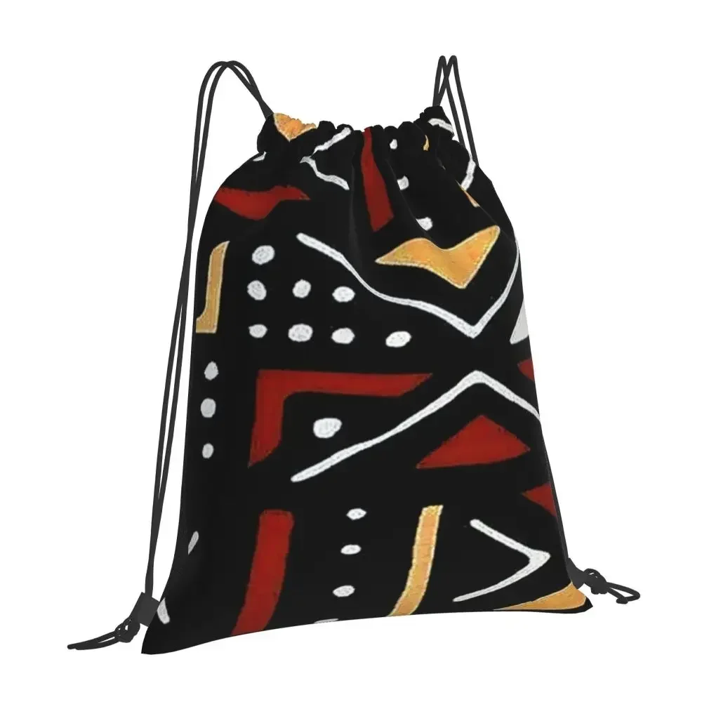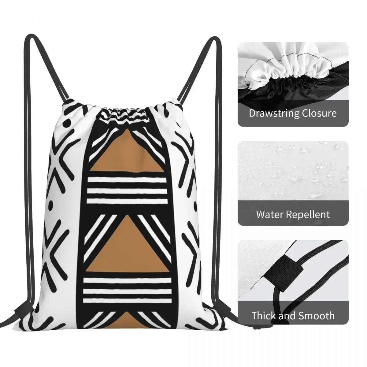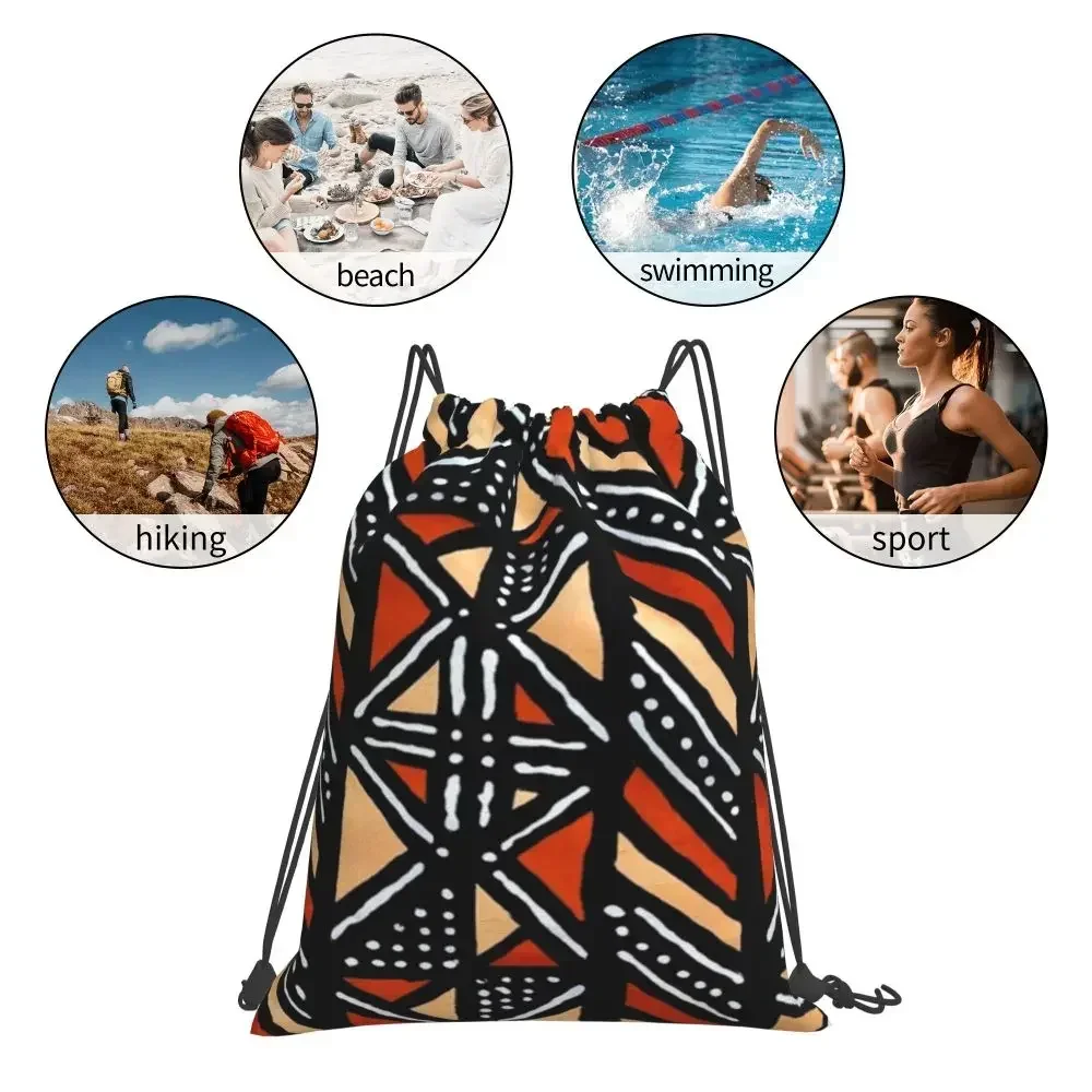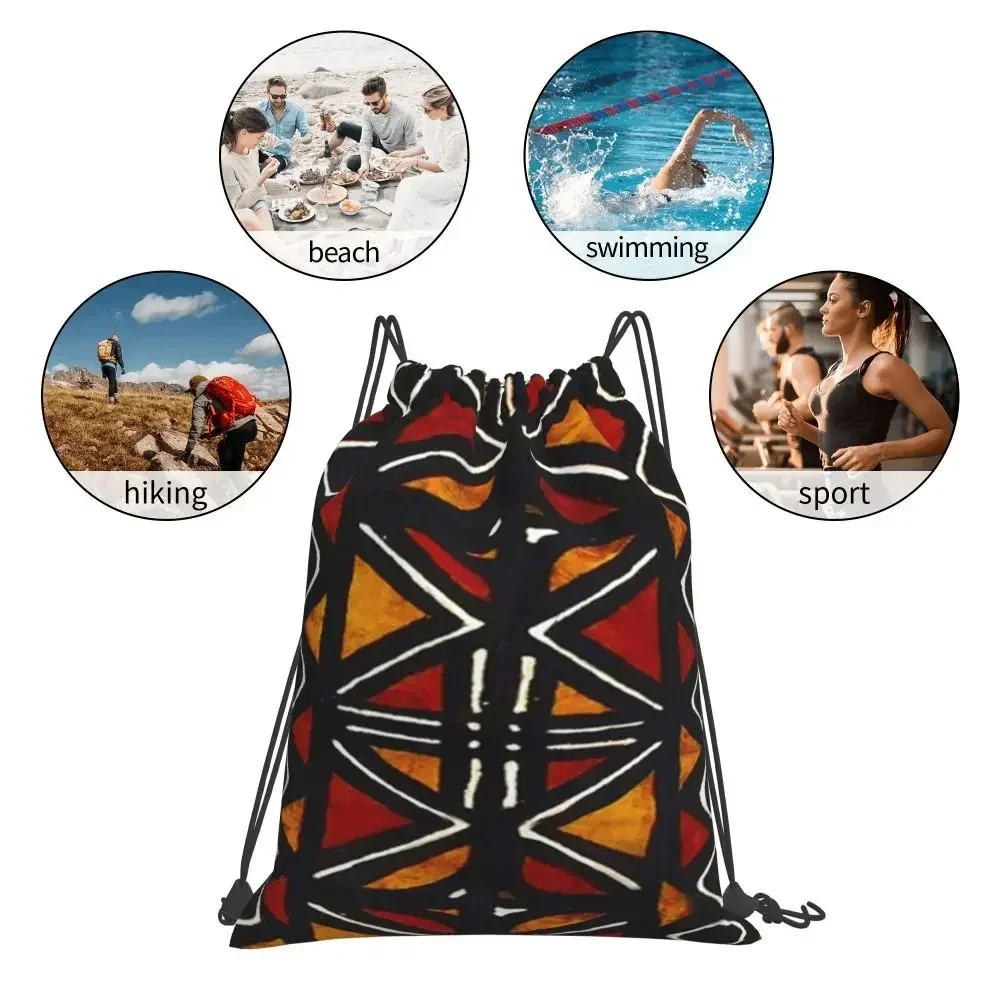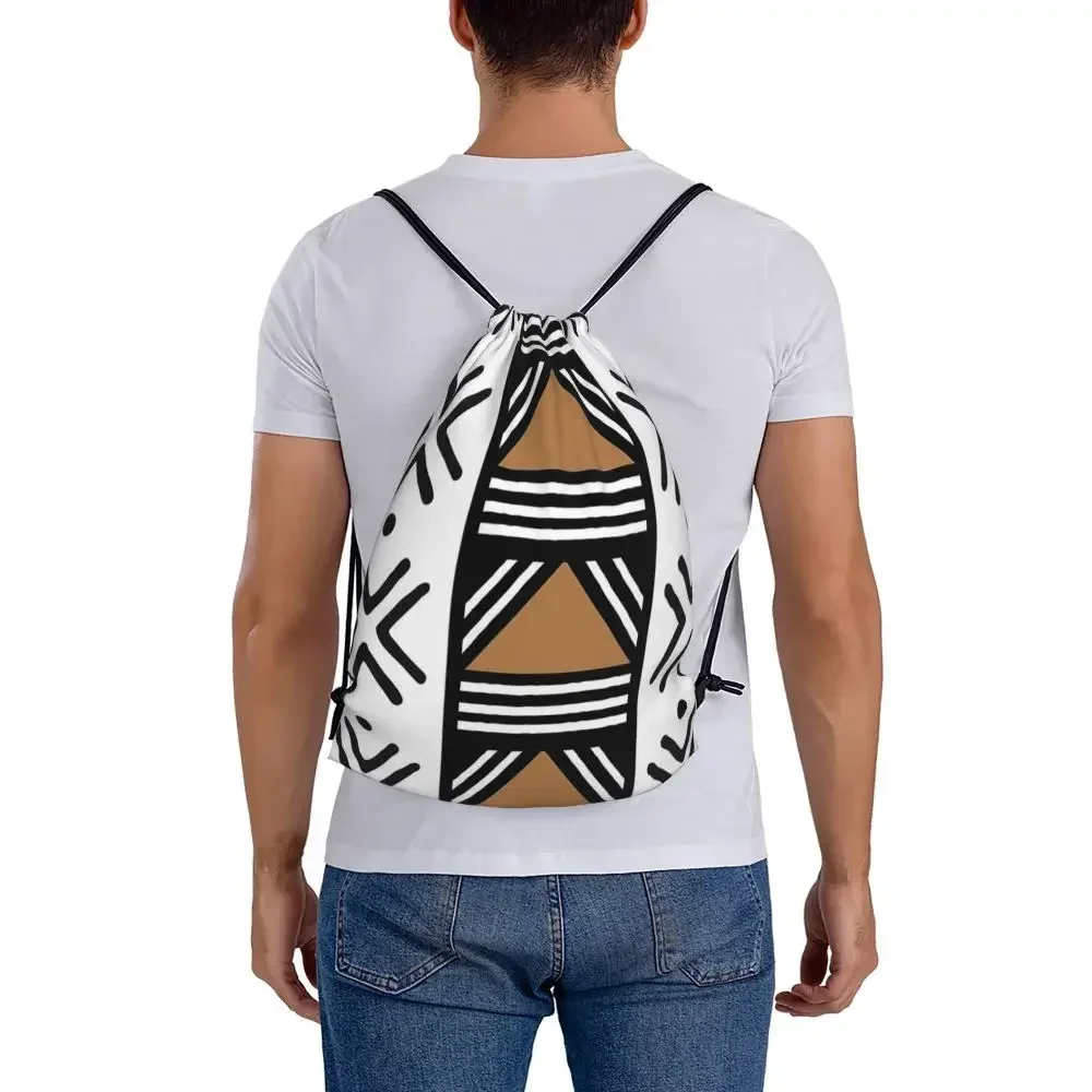 African Tribal Bogolan Pattern Backpacks Portable Drawstring Bags Drawstring Bundle Pocket Sports Bag BookBag For Travel School