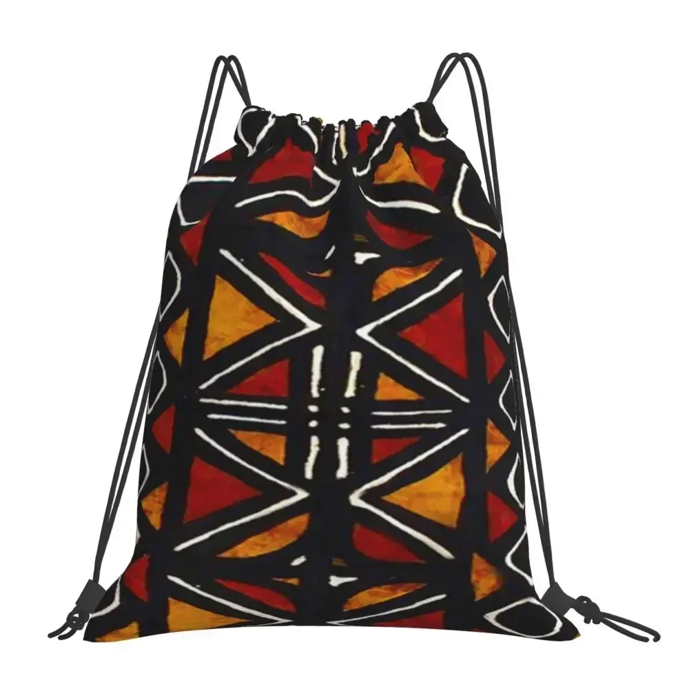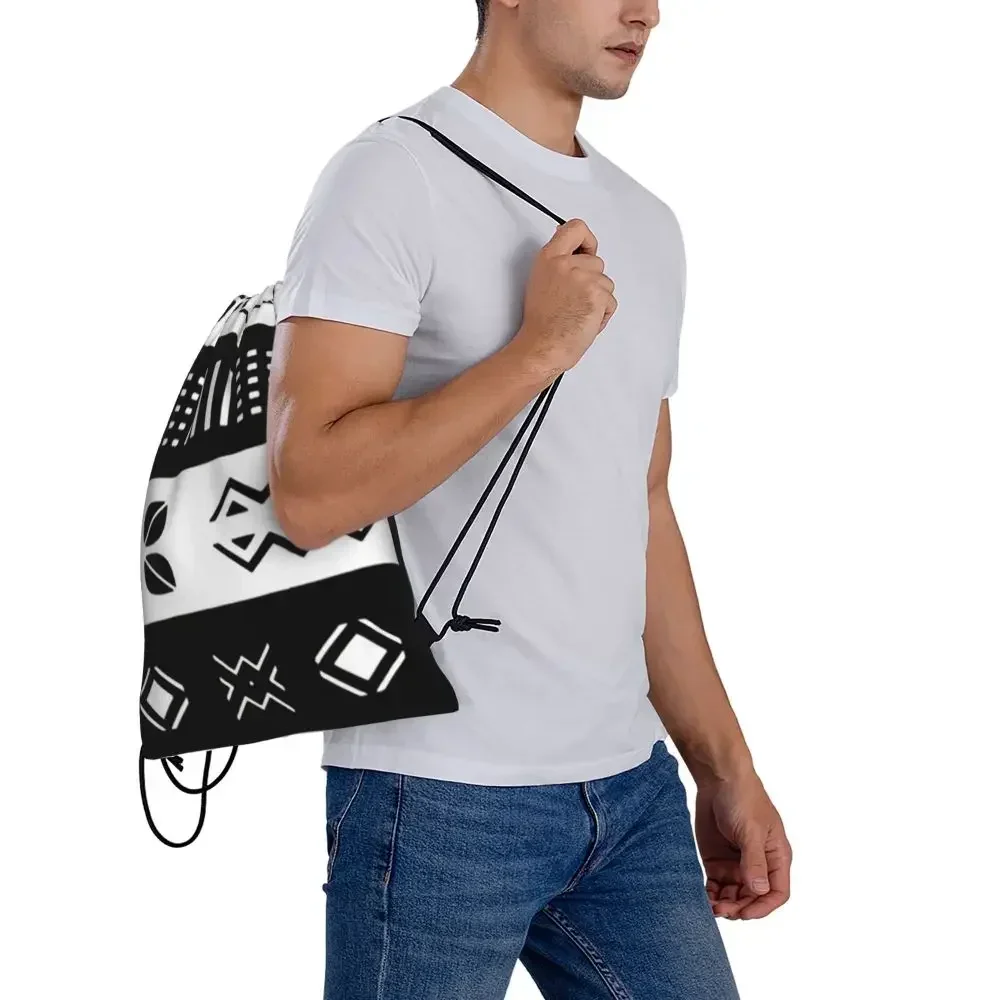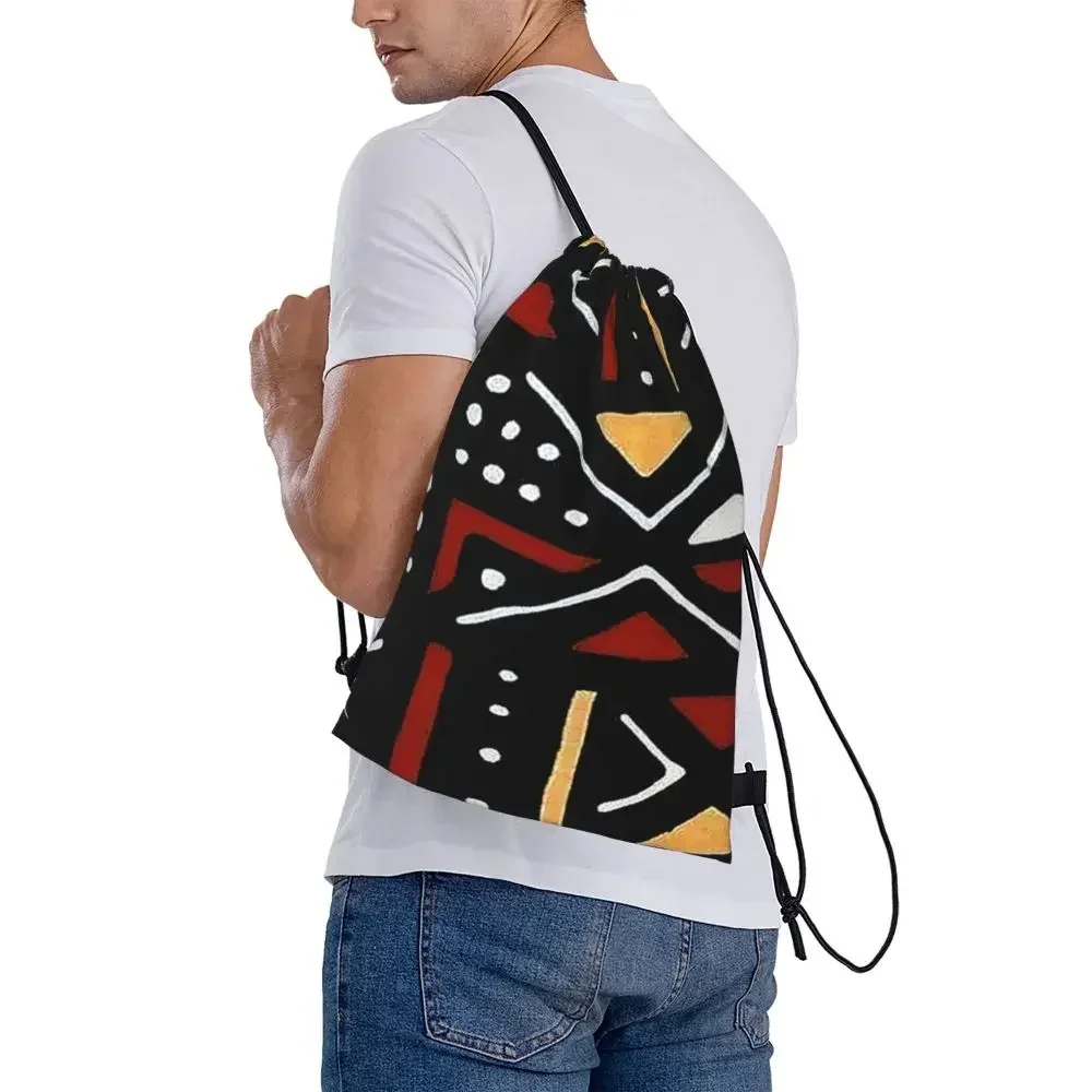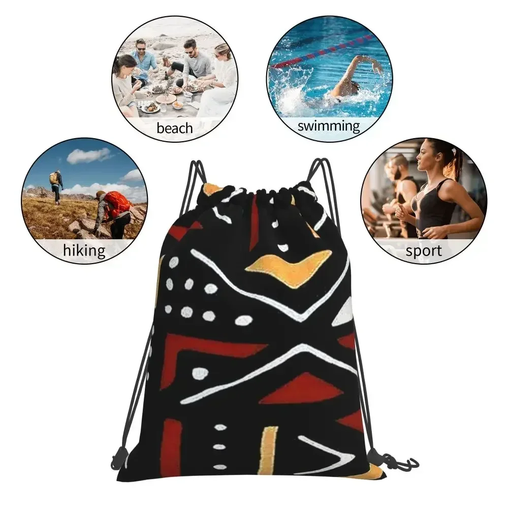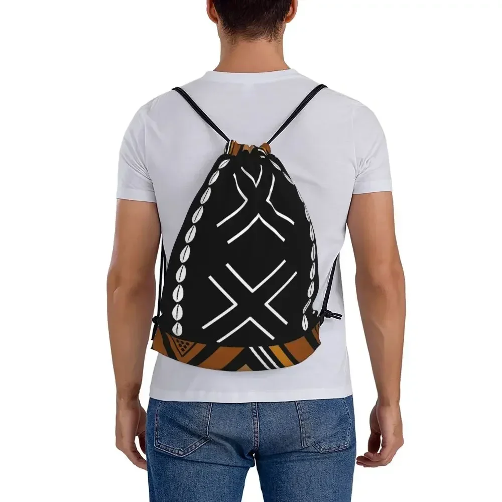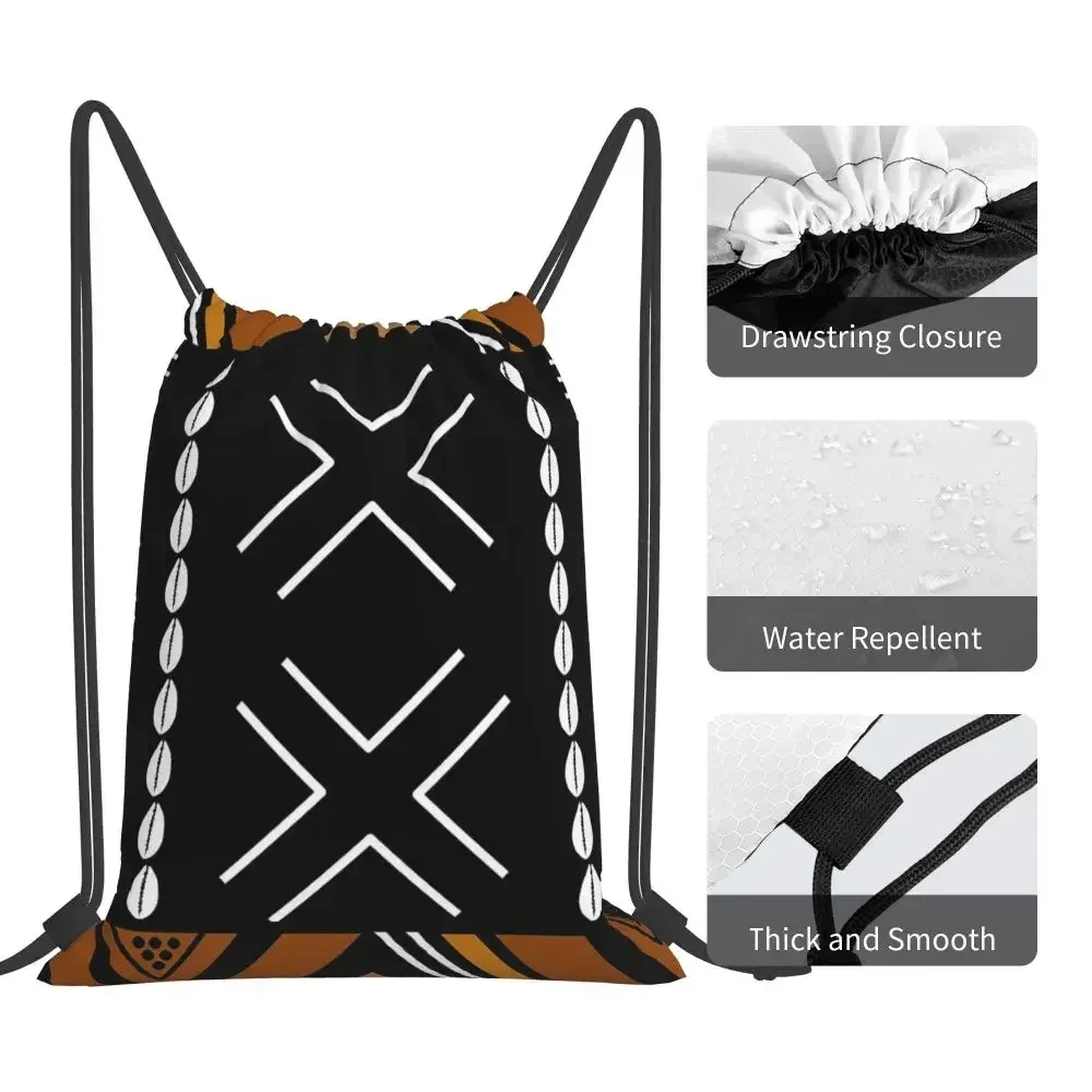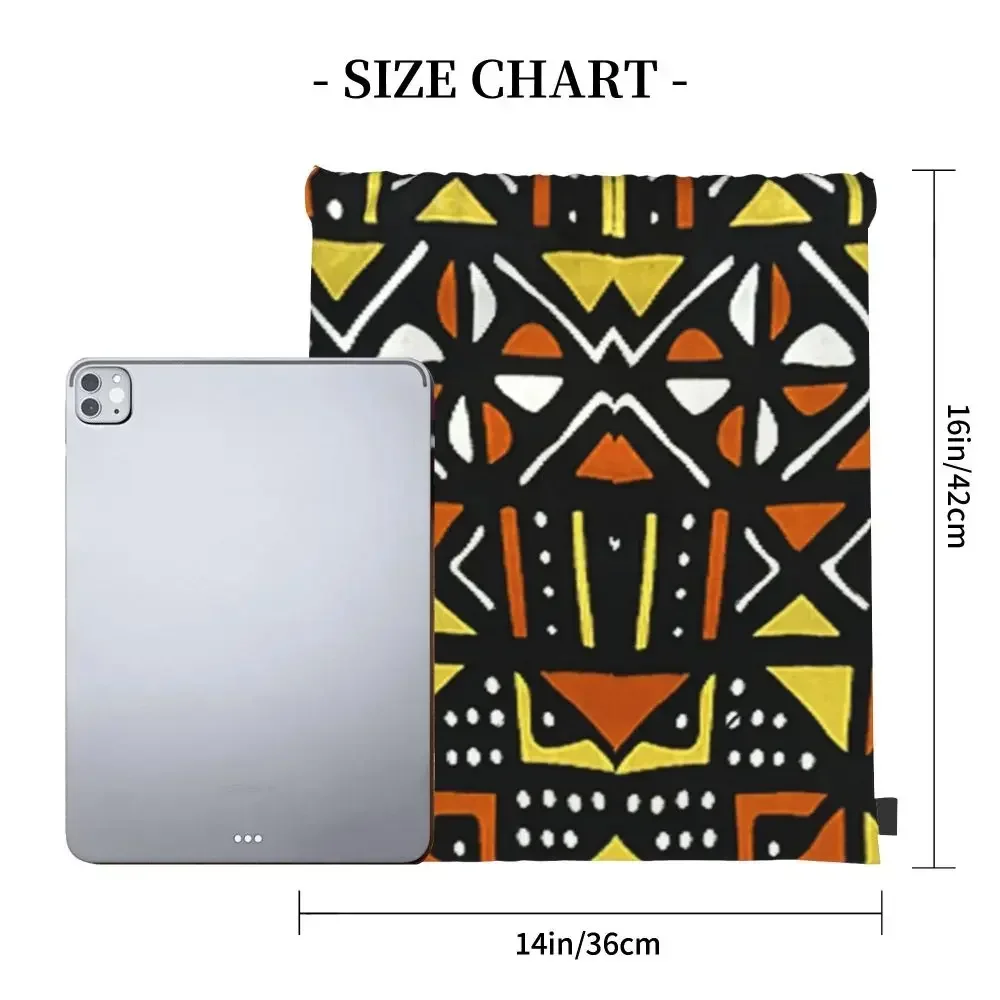 African Tribal Bogolan Pattern Backpacks Portable Drawstring Bags Drawstring Bundle Pocket Sports Bag BookBag For Travel School