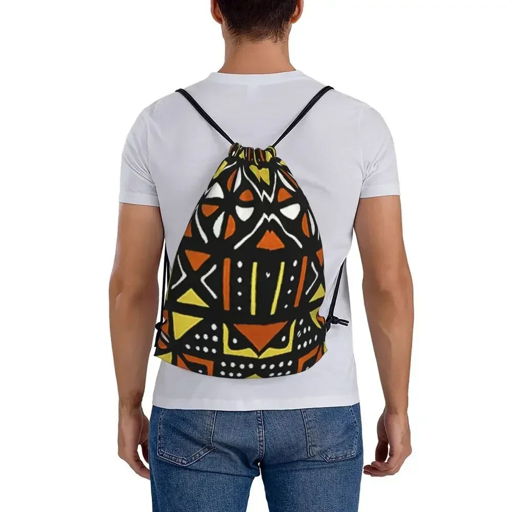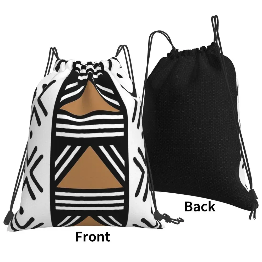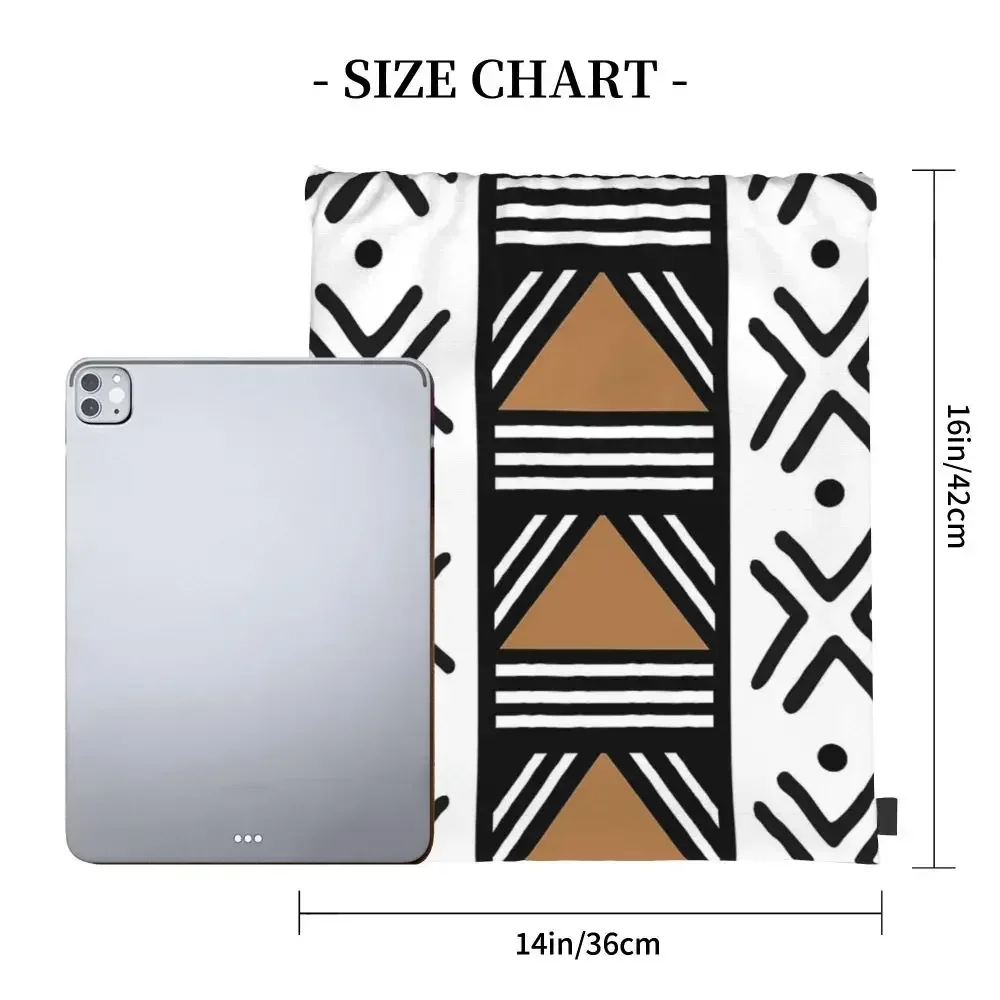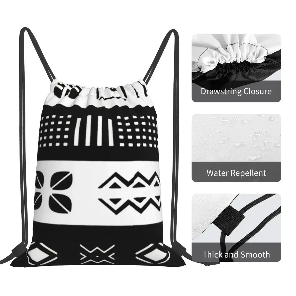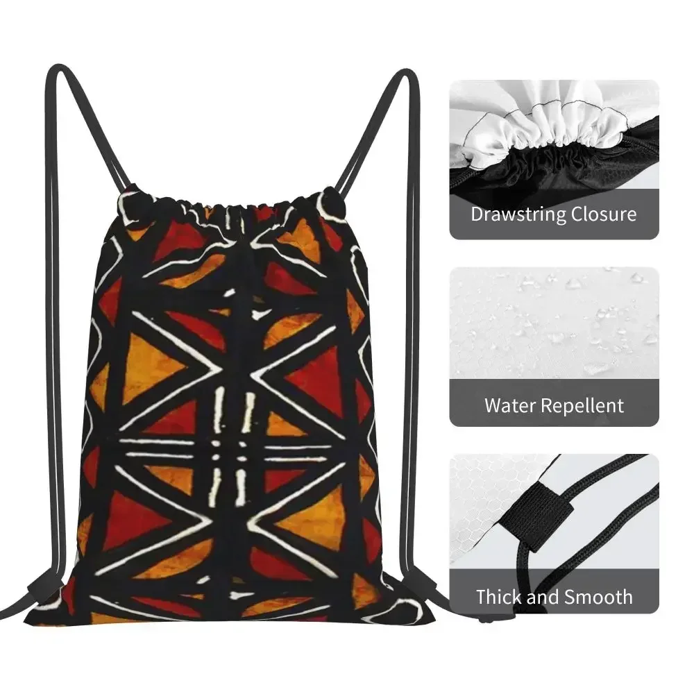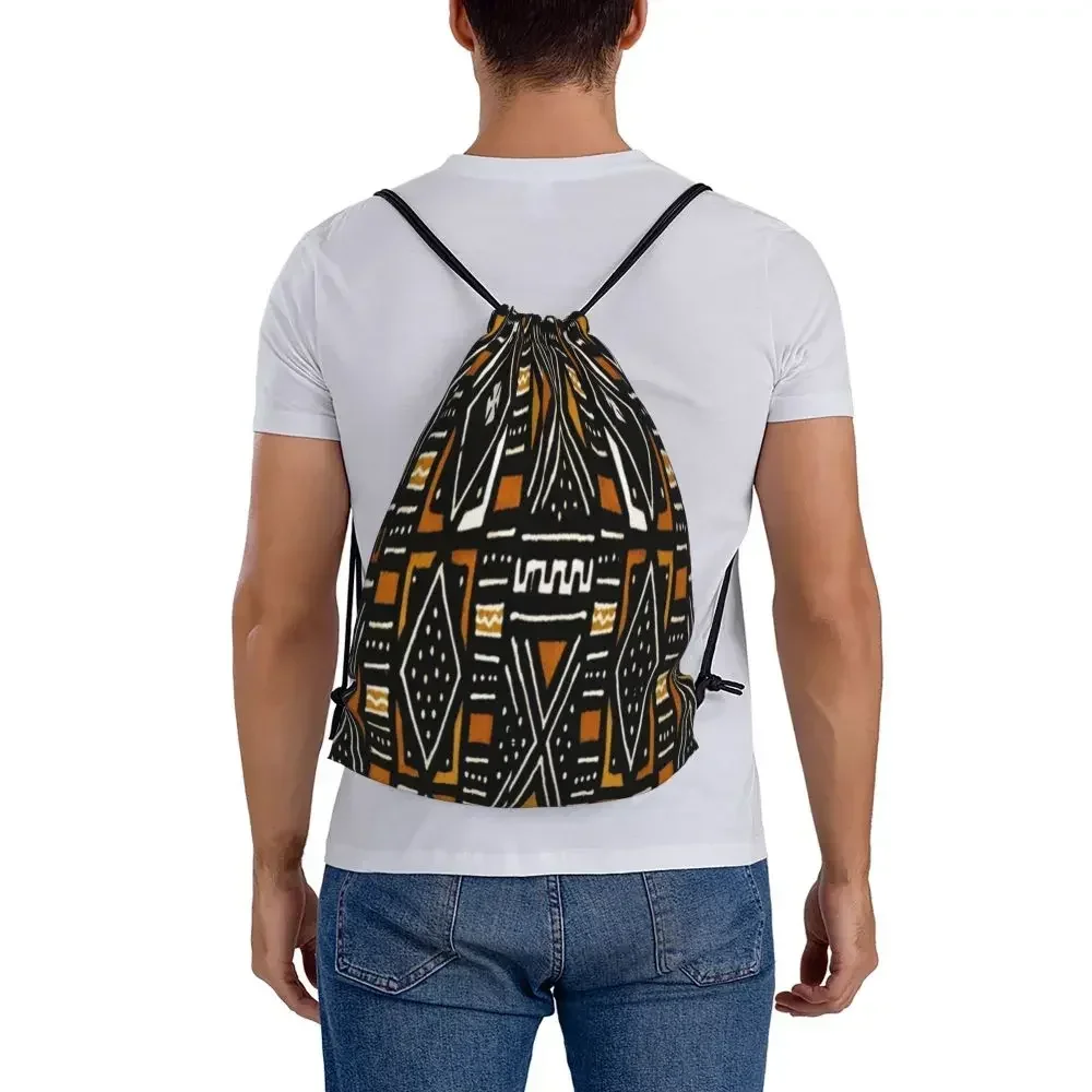 African Tribal Bogolan Pattern Backpacks Portable Drawstring Bags Drawstring Bundle Pocket Sports Bag BookBag For Travel School