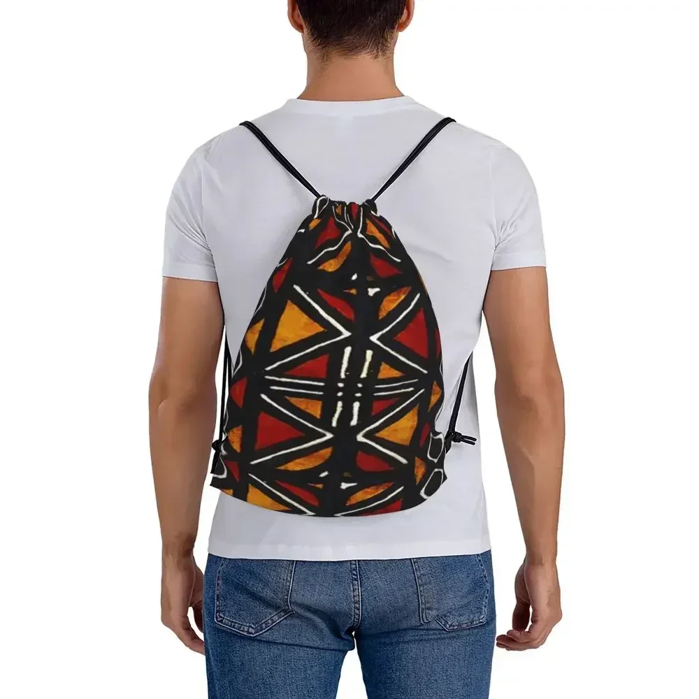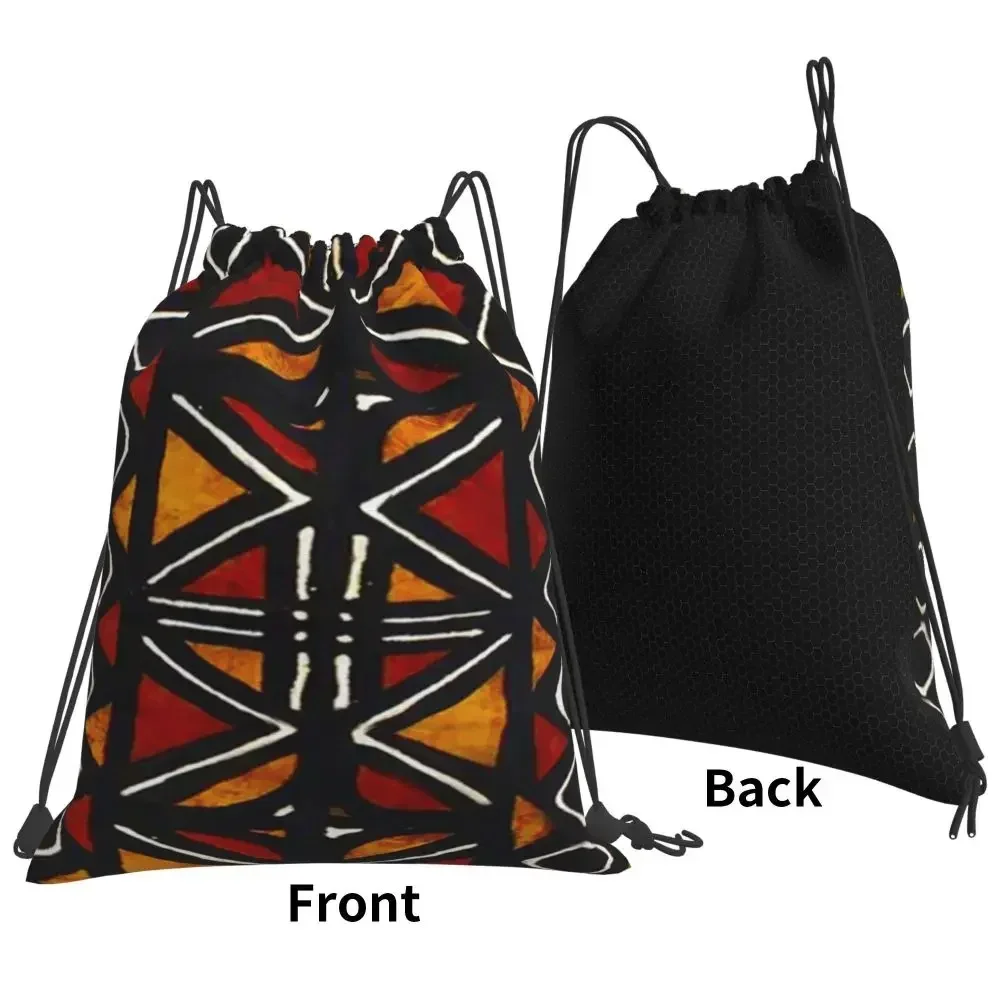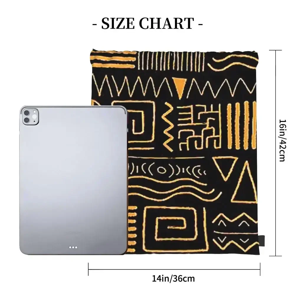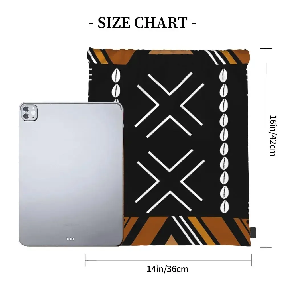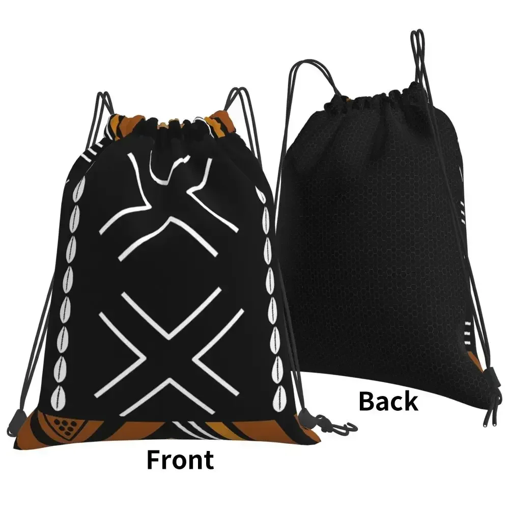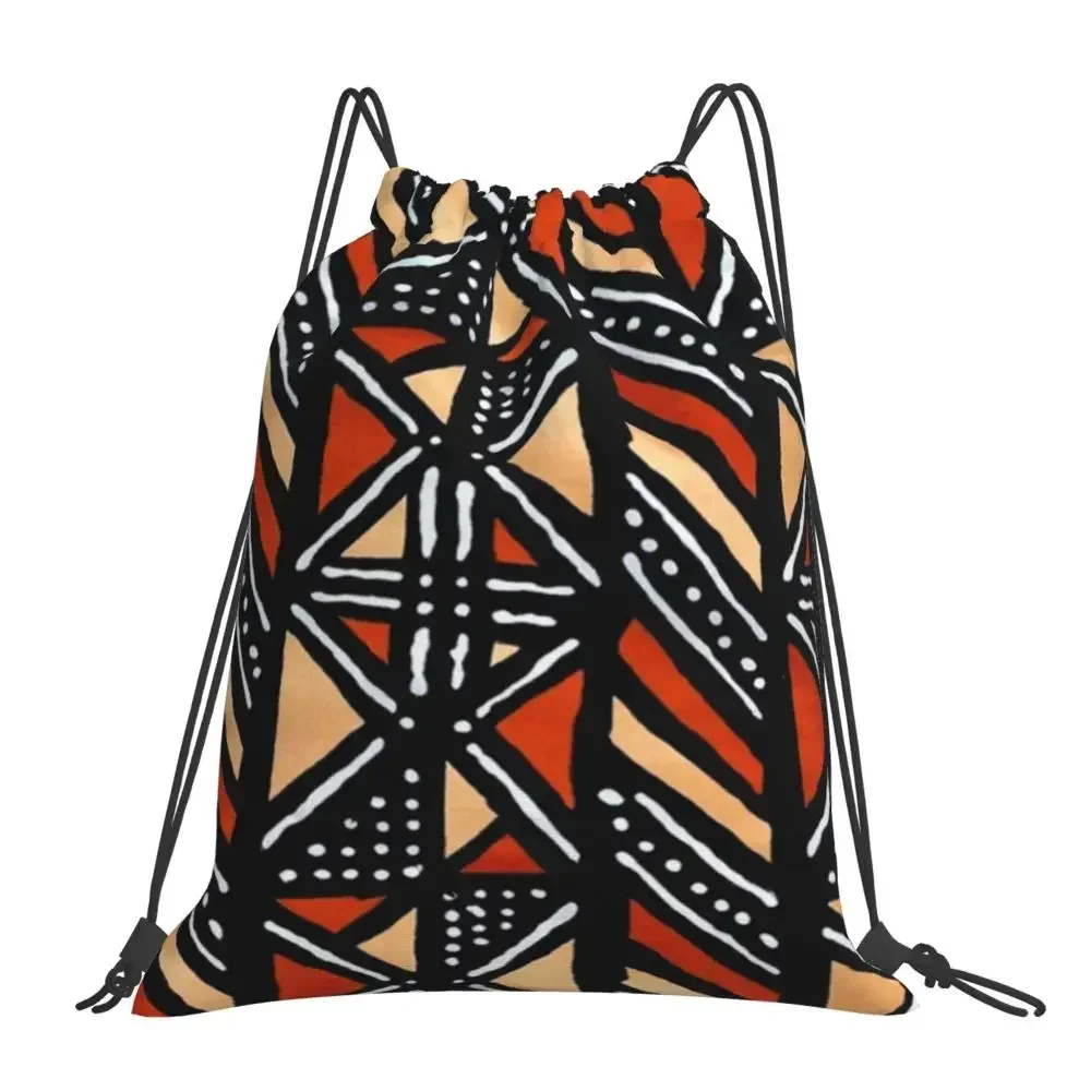African Tribal Bogolan Pattern Backpacks Portable Drawstring Bags Drawstring Bundle Pocket Sports Bag BookBag For Travel School