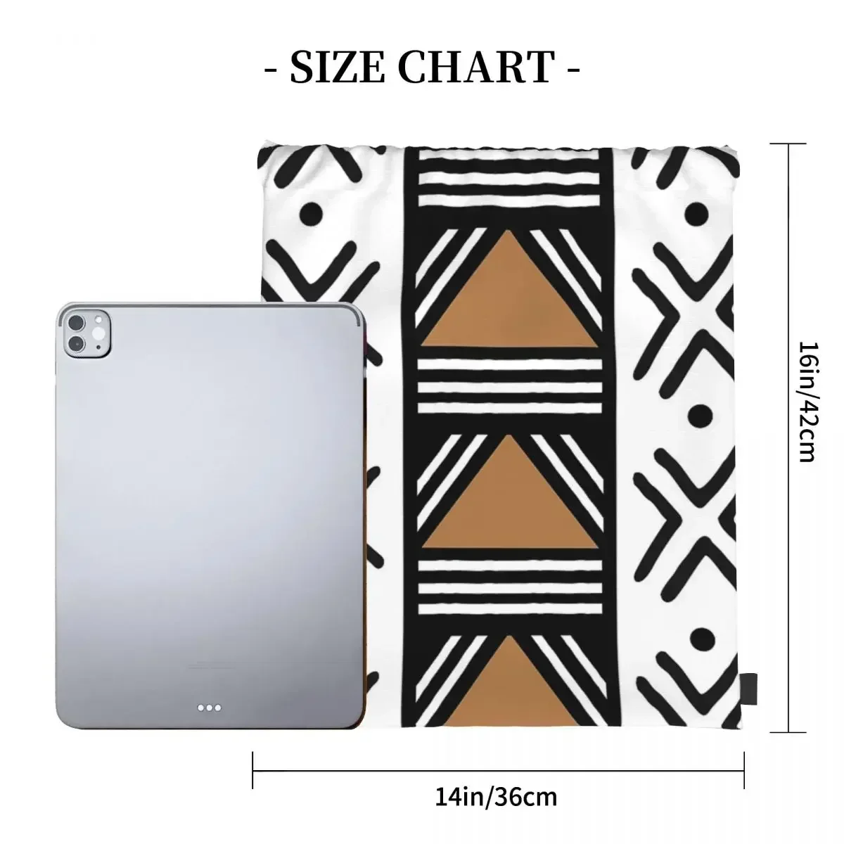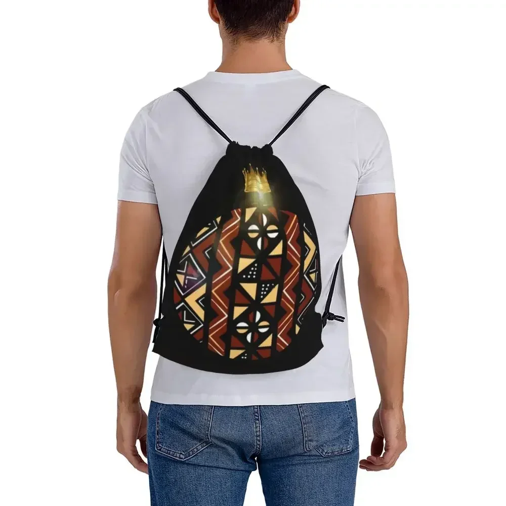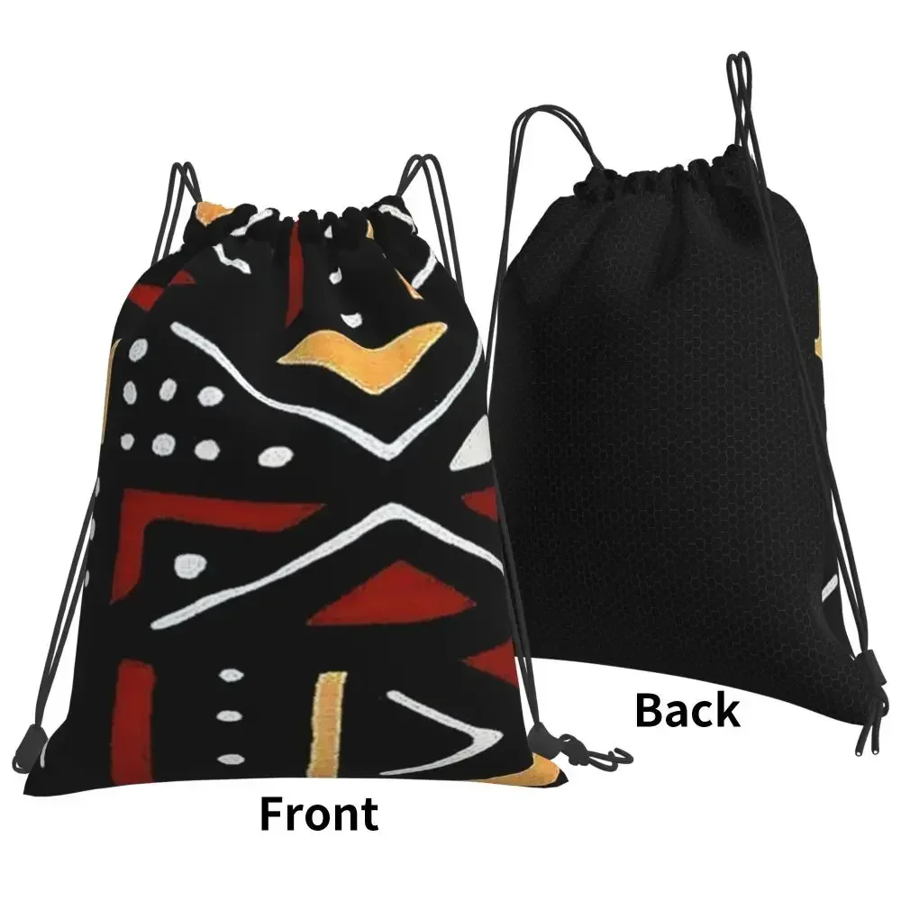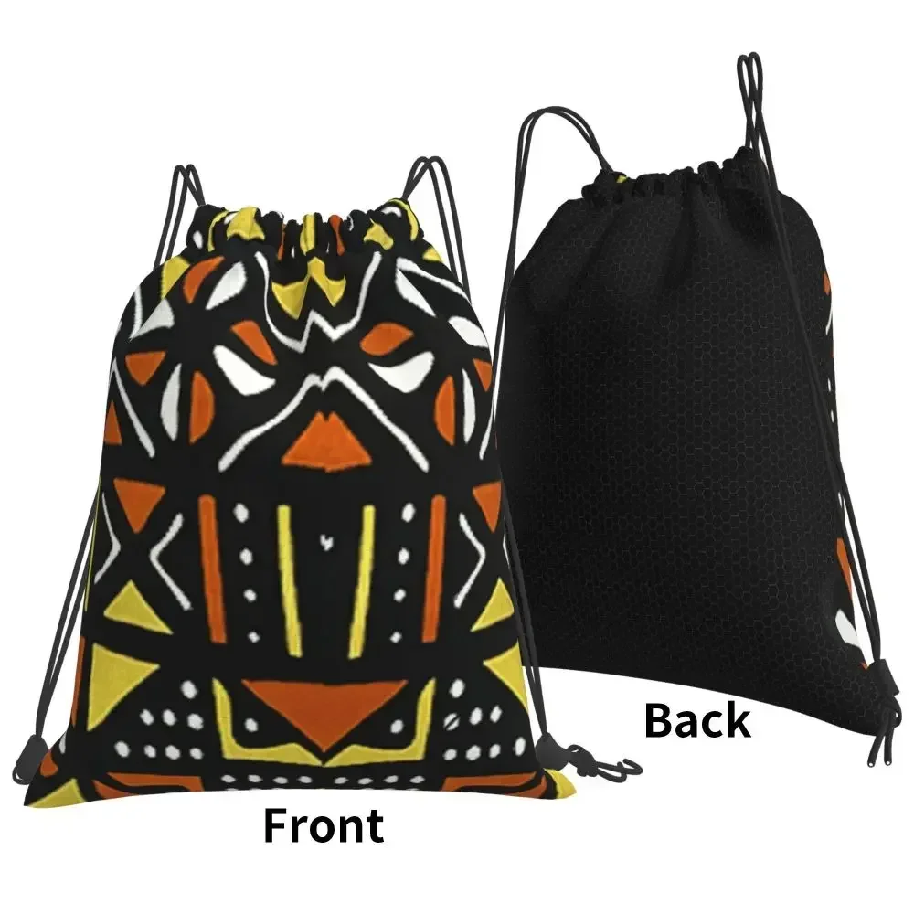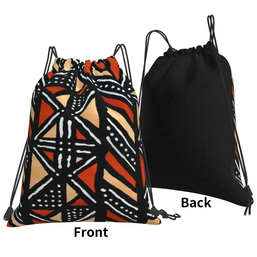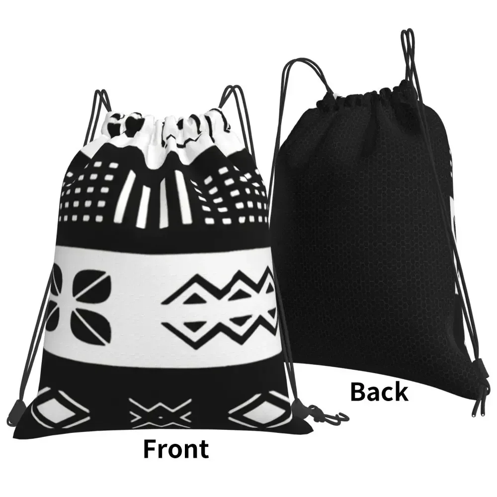 African Tribal Bogolan Pattern Backpacks Portable Drawstring Bags Drawstring Bundle Pocket Sports Bag BookBag For Travel School