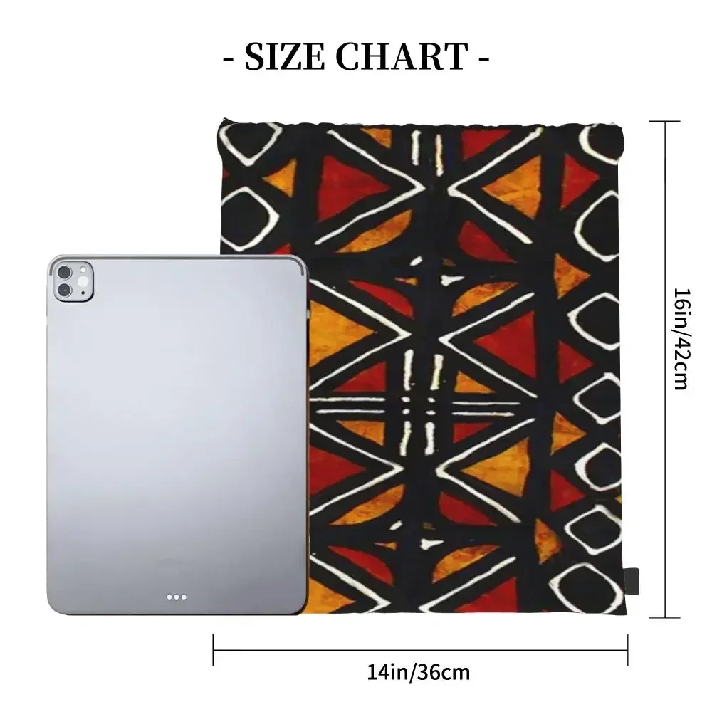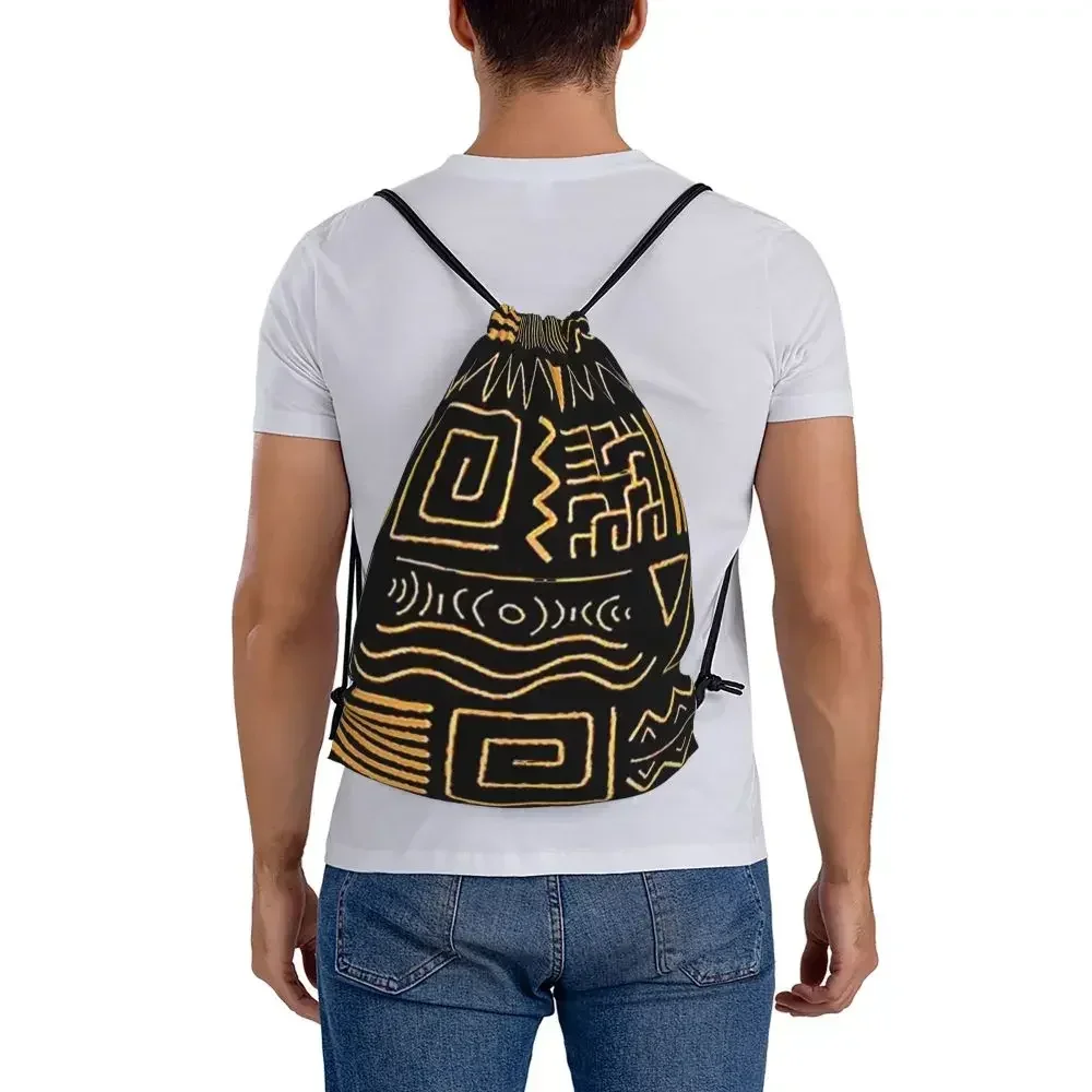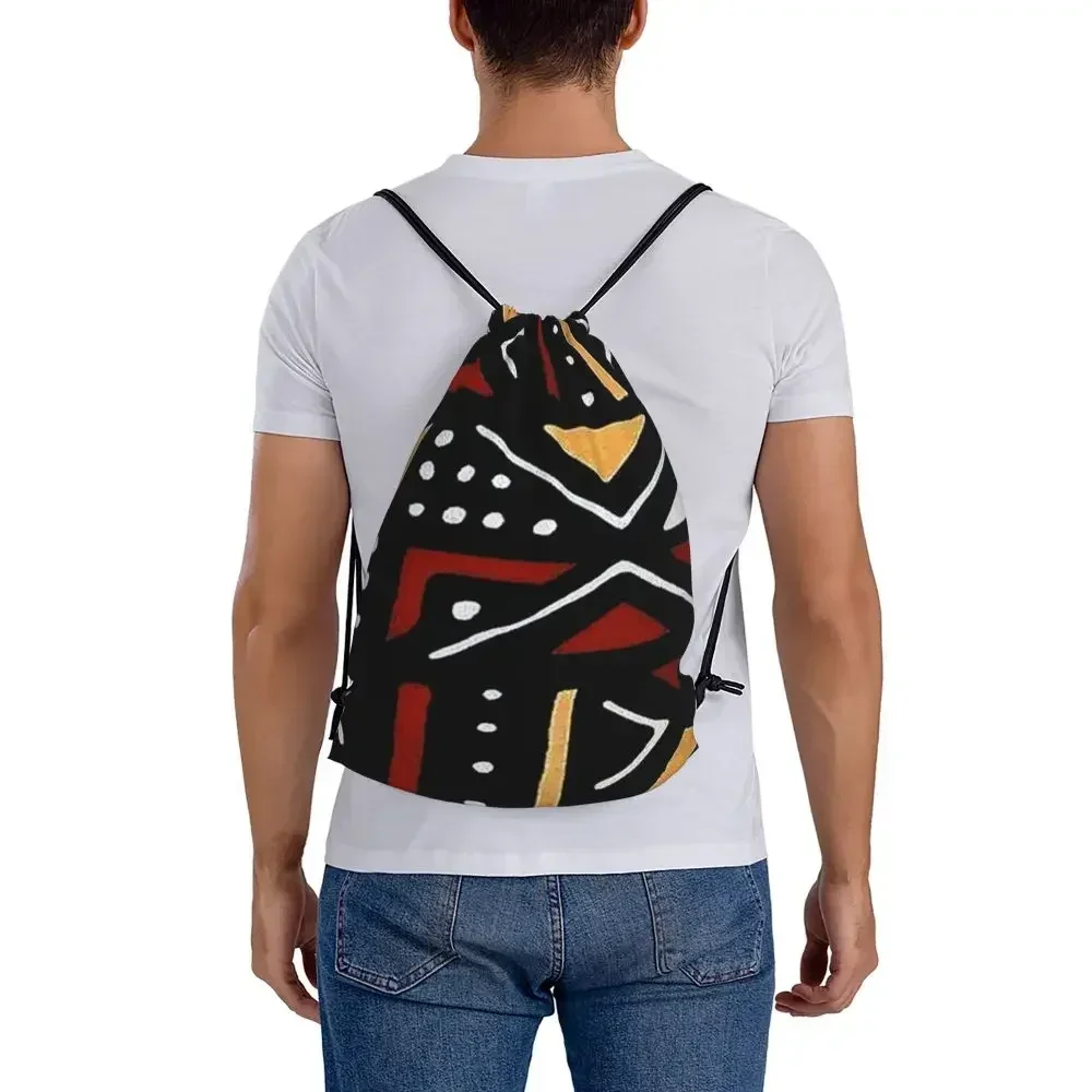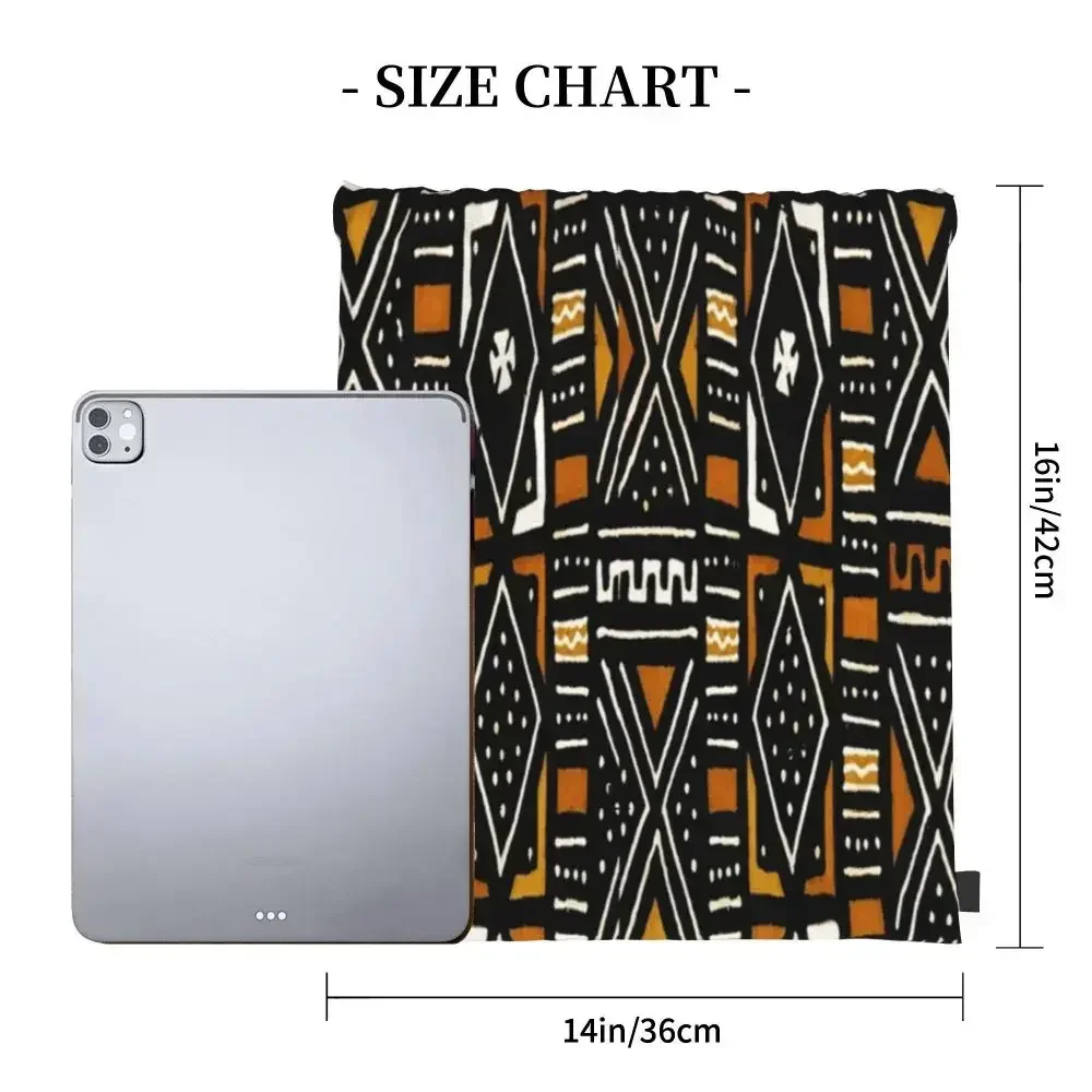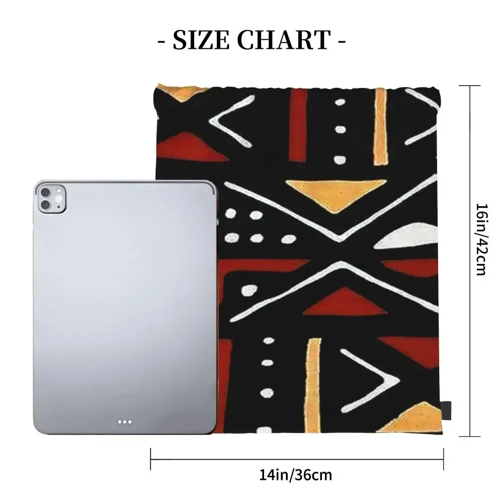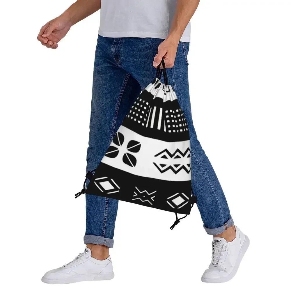African Tribal Bogolan Pattern Backpacks Portable Drawstring Bags Drawstring Bundle Pocket Sports Bag BookBag For Travel School