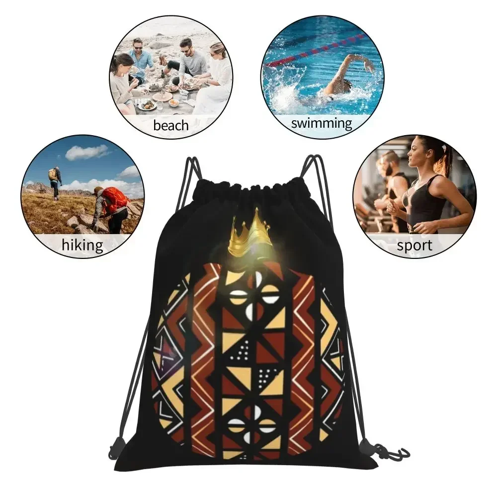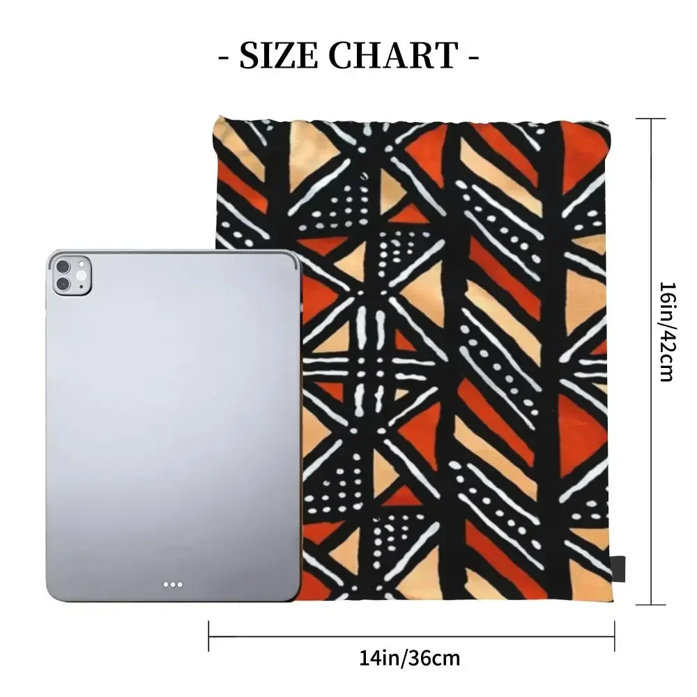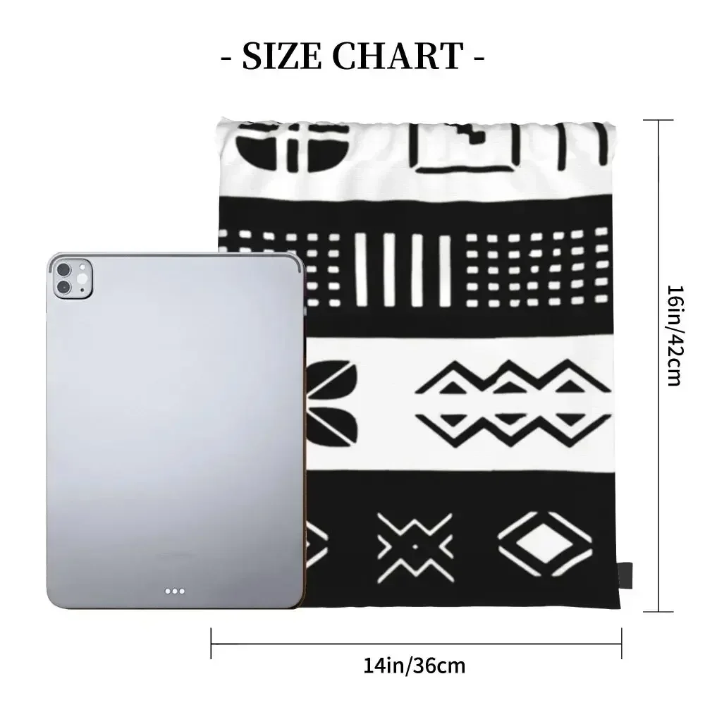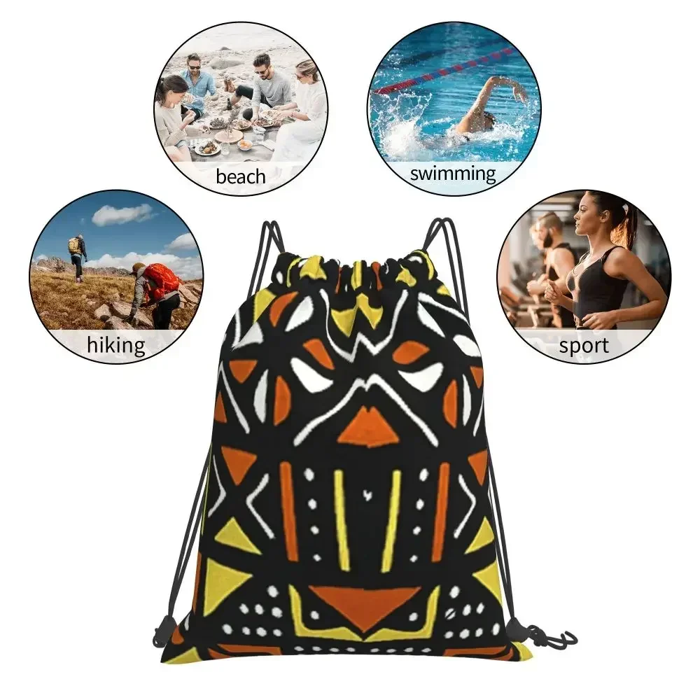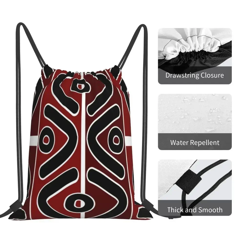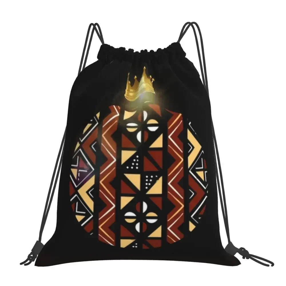 African Tribal Bogolan Pattern Backpacks Portable Drawstring Bags Drawstring Bundle Pocket Sports Bag BookBag For Travel School