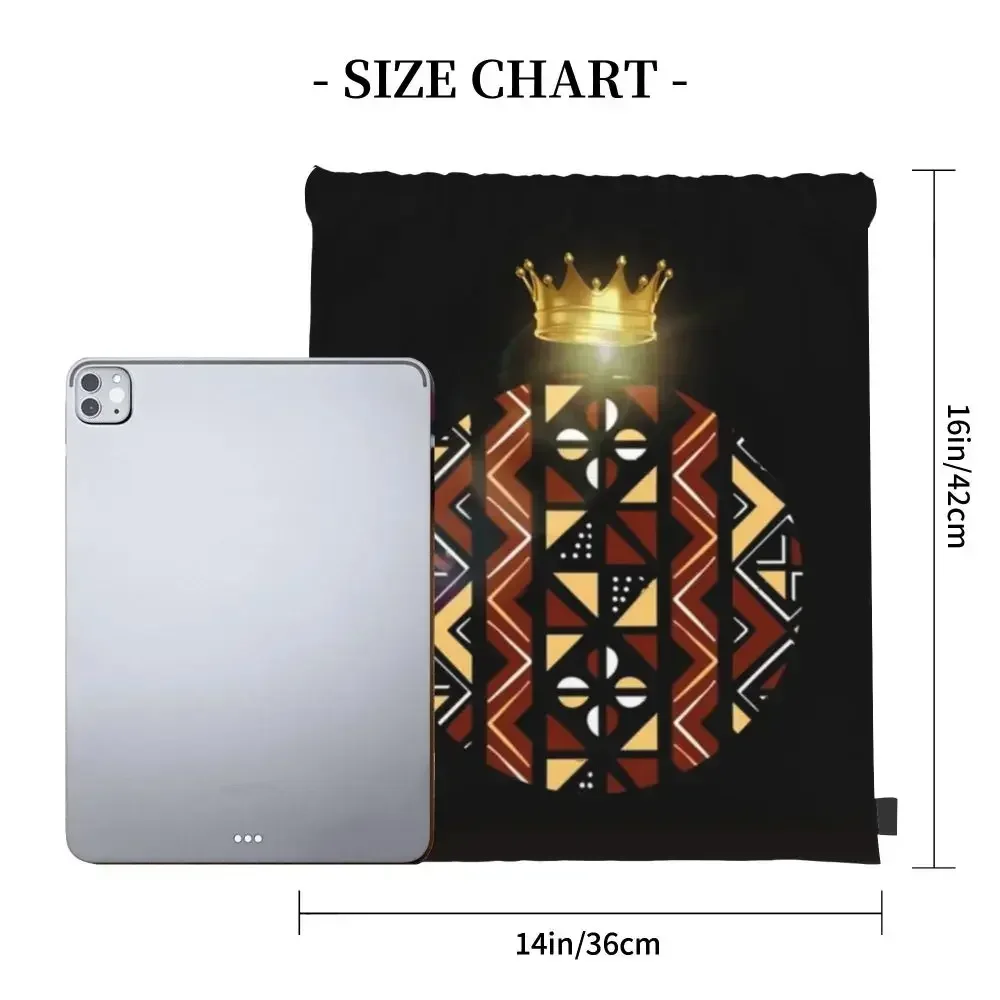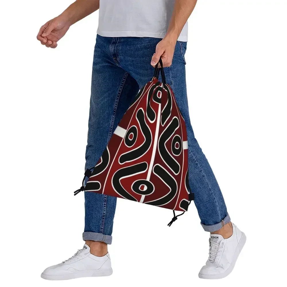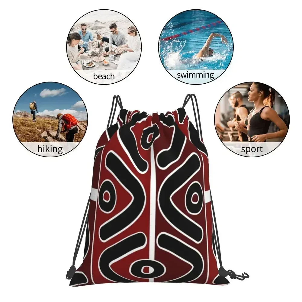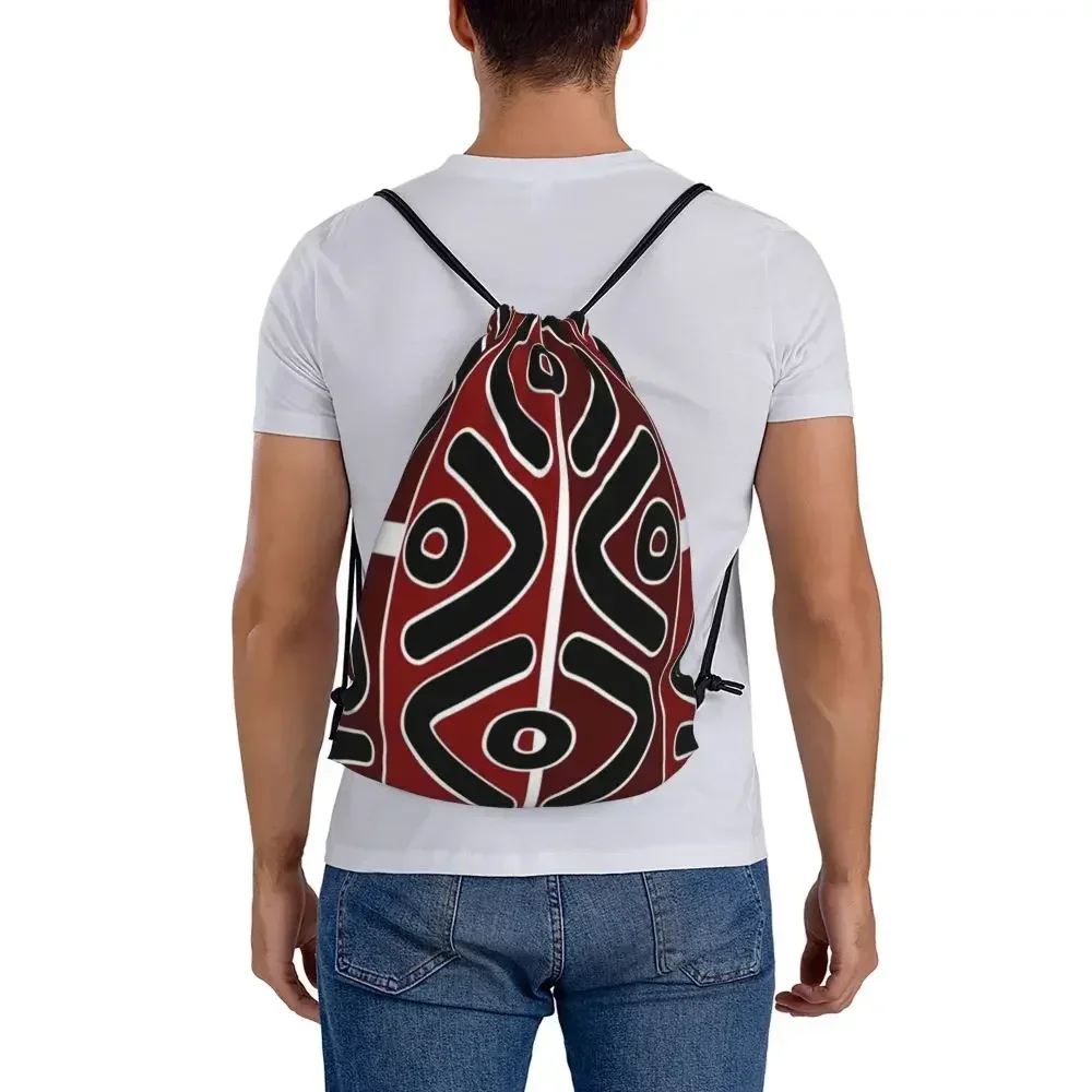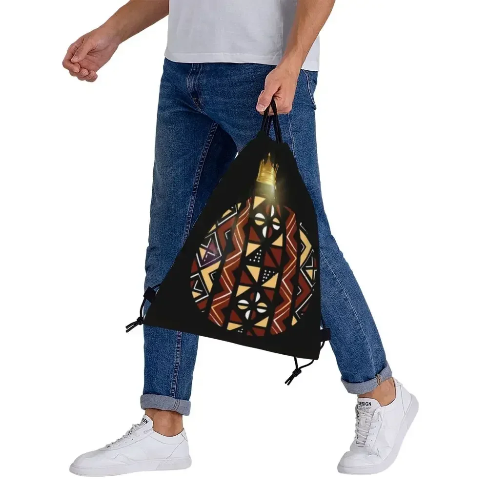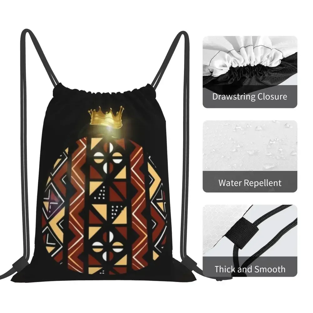 African Tribal Bogolan Pattern Backpacks Portable Drawstring Bags Drawstring Bundle Pocket Sports Bag BookBag For Travel School