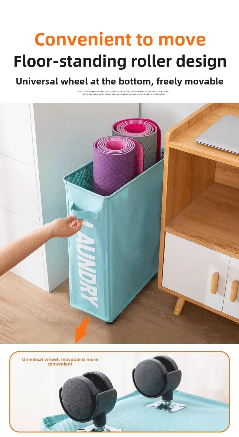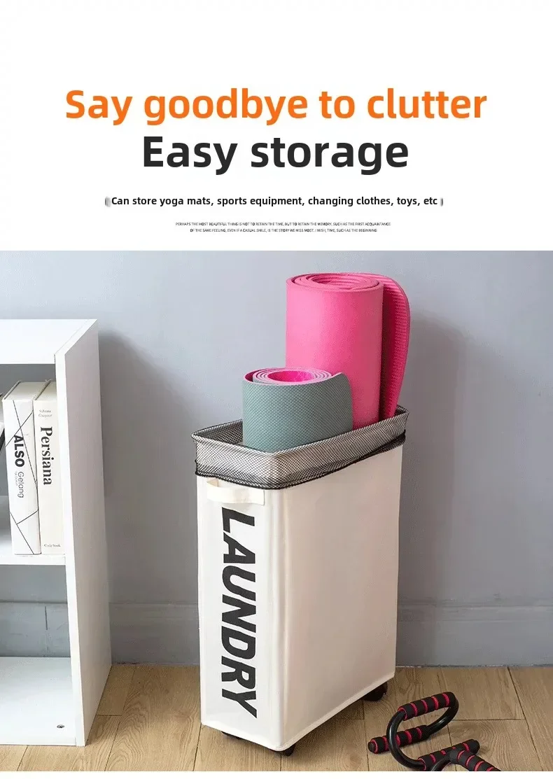 Laundry Basket with Wheels Large Capacity Yoga Mat Storage Basket Multifunctional Foldable Waterproof Dirty Clothes Storage Bag