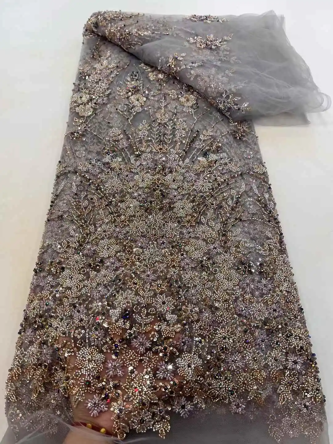 Luxurious Nigerian African Beaded Lace Fabric High Quality Sequins Embroidery African French Lace Fabric For Sewing Dress xc4.0400