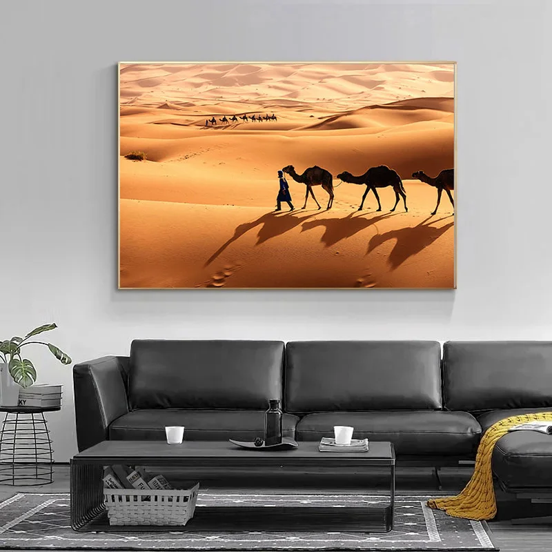 This canvas print is seriously awesome! The colors pop, and the camels look so cool against the desert backdrop. It totally brightens up my room. Love it!